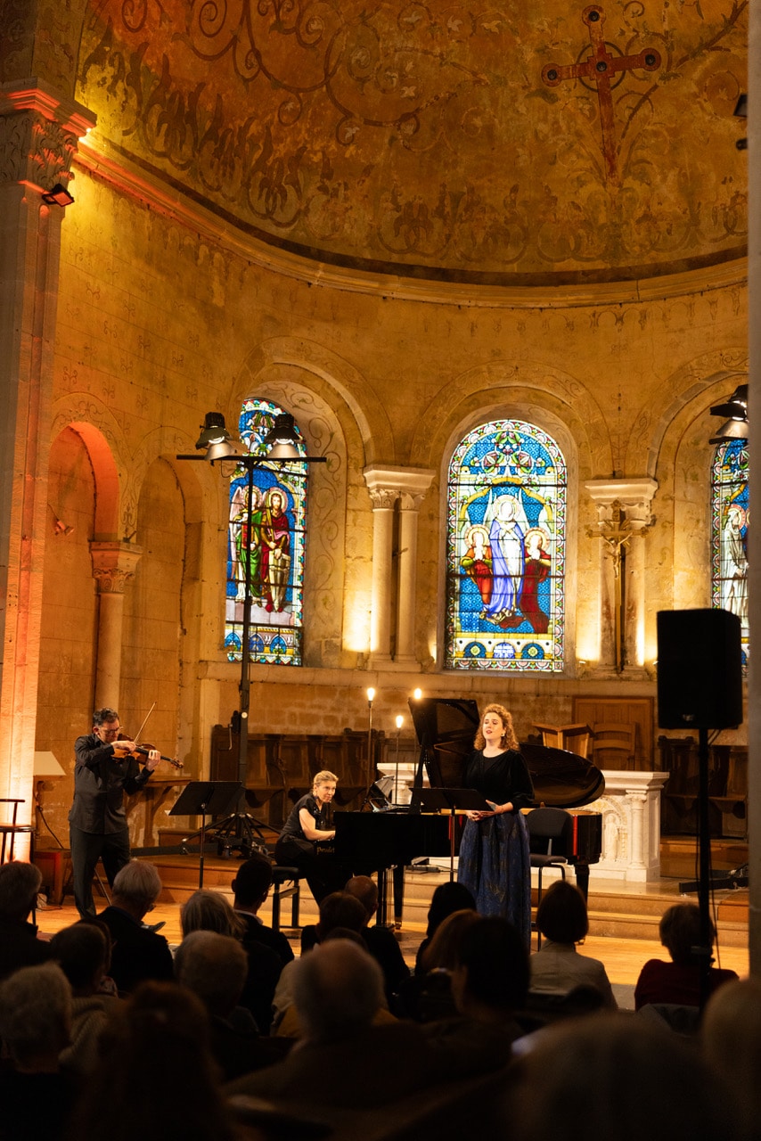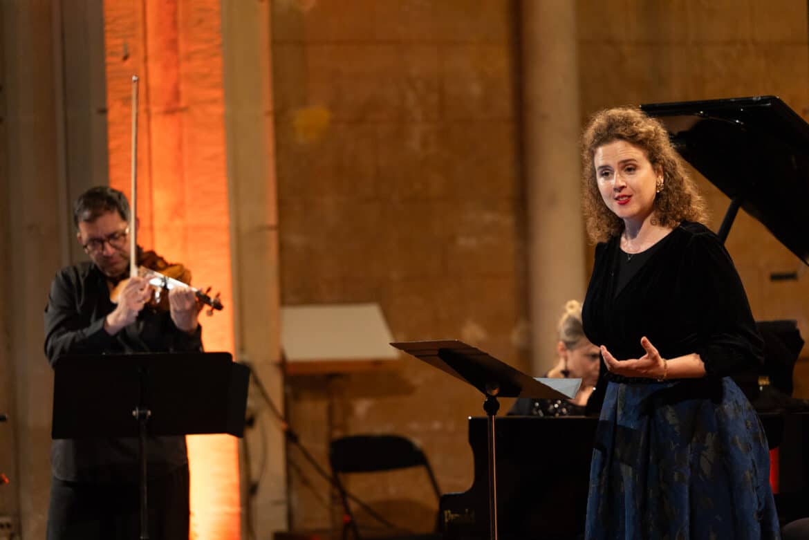 À l’origine du projet du disque de 2023 et de ce concert inaugural des Rencontres musicales, le violoniste arménien David Haroutunian et la pianiste russe Xénia Maliarevitch tissent autour de la voix d’Eva Zaïcik une cathédrale musicale belle et fragile comme une bulle de savon.