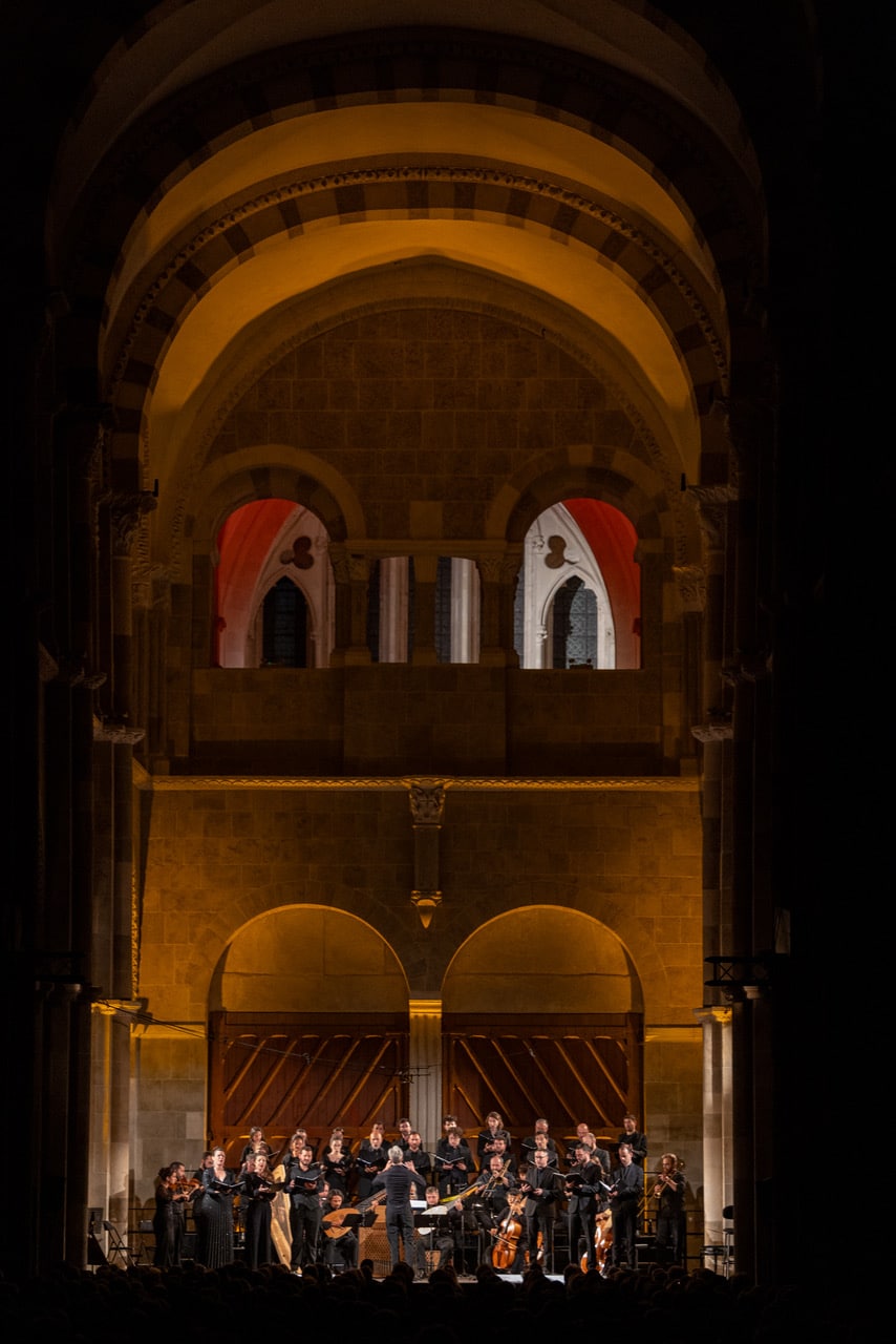 Les vêpres de 1643 sont ainsi un agencement de différents morceaux publiés en 1640 dans la Selva morale e spirituale que les musicologues considèrent comme le testament musical de Monteverdi et le sommet de son art. Cette perfection formelle fait dire à Vincent Dumestre qu’elles sont un peu les « vêpres de la maturité » (sic) et justifie probablement qu’après les avoir gravées durant l’automne 2024 pour le label Château de Versailles Spectacles (disque récompensé par Première loge d’un Appassionato) il ait accepté de les jouer en public à Versailles, à Cracovie… et à présent à Vézelay !