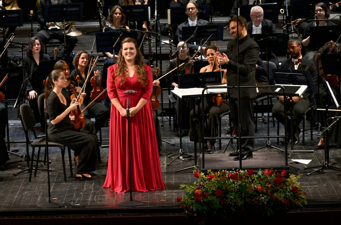La soprano Scilla Cristiano ha cantato due arie della follia: «Ardon gli incensi» dalla Lucia di Lammermoor di Gaetano Donizetti (accompagnata dall’ottimo flautista Andrea Oman) e «Qui la voce sua soave» dai Puritani di Vincenzo Bellini. La coloratura brillante e l’agilità nel salire e scendere dal fortissimo ai filati in pianissimo hanno reso toccanti le sue esibizioni.