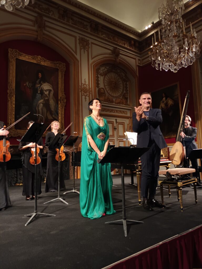 La beauté, par l’engagement et l’expressivité des Paladins. Les élans martiaux d’Ariodante épousaient parfaitement le cachet de la salle où se tenait ce concert : l’ancienne Bibliothèque des Invalides, transformée depuis en salle de concerts et de conférences. Elle est ornée de magnifiques armures disposées sur les murs, alternant avec de grands tableaux historiques ; le plus prestigieux est une superbe copie du tableau de Hyacinthe Rigaud représentant Louis XIV. Les volutes dansantes de la Sonate de Händel semblaient une pause délicate aux affres évoquées dans les deux cantates qui l’entouraient.