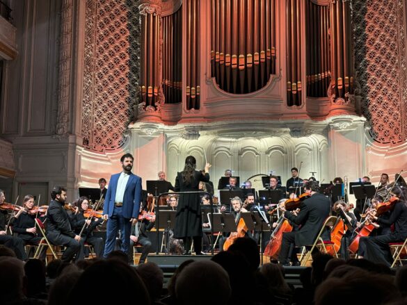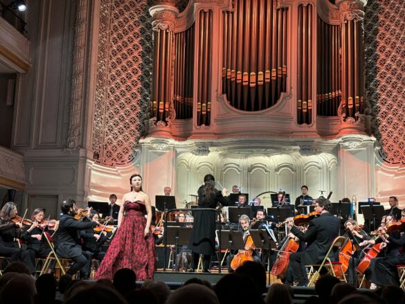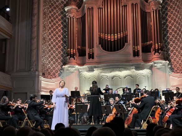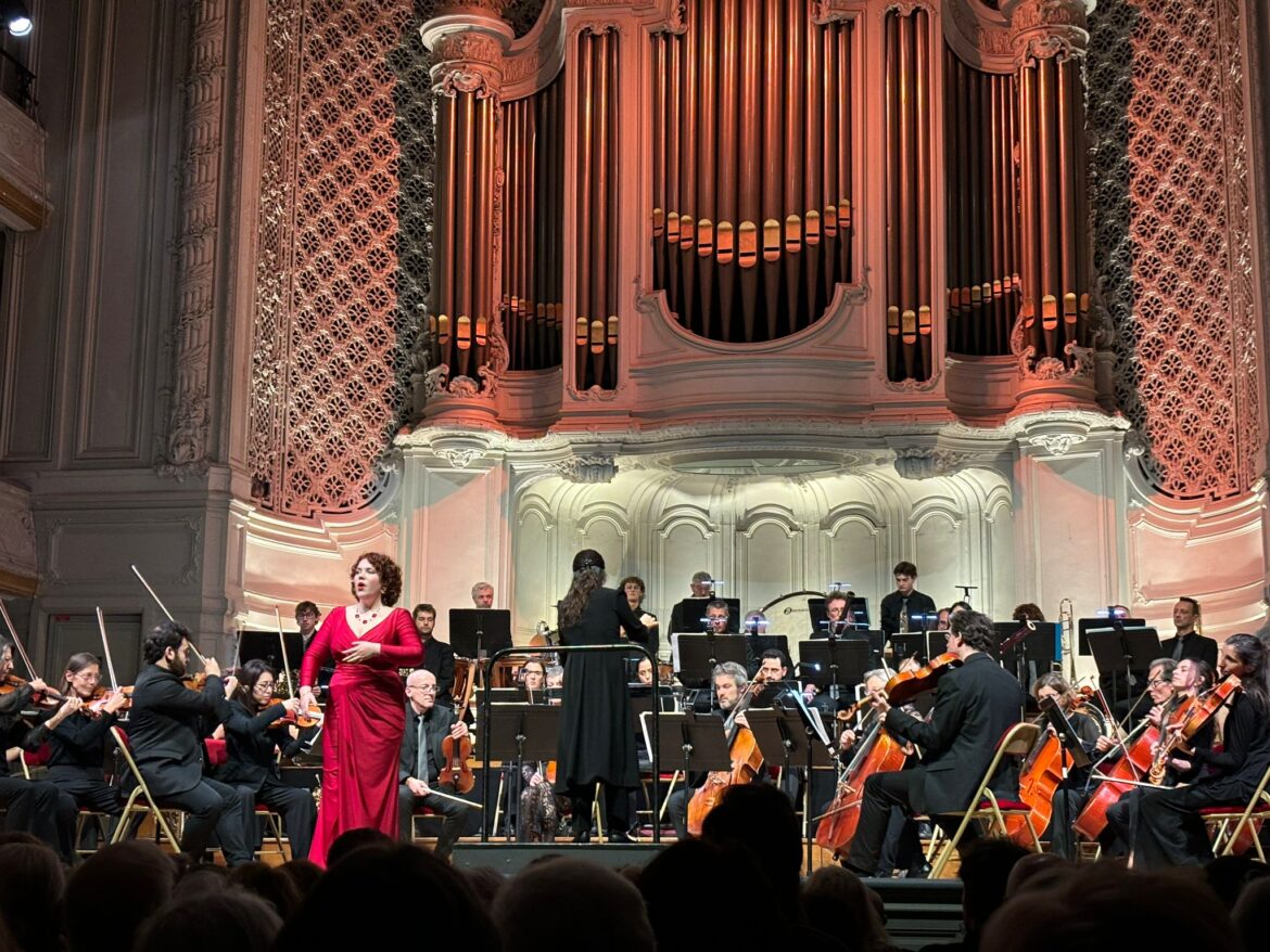 Pour autant, le programme inclut aussi des œuvres de compositeurs vivants, qui seront tout aussi chaleureusement acclamées. On reste un peu dubitatif face à ce qui n’est en fait que le deuxième mouvement d’un concerto intitulé Through Flames, du jeune compositeur brésilien Jean Szulc, qui permet d’entendre l’encore plus jeune violoniste Maelys Lauriac, lauréate du Concours Edouard Colonne 2025. D’Henri Nafilyan, Roumain de Paris régulièrement honoré par les organisateurs du Concours Enesco, on entend Guyane, pièce vocale créée en 2023 dans sa version avec piano : hélas, si la mezzo espagnole Begoña Gomez a pu travailler sa diction de la séguedille de Carmen en écoutant des enregistrements, il n’en va pas de même pour Guyane, où l’on peine à comprendre quelques mots ici et là.