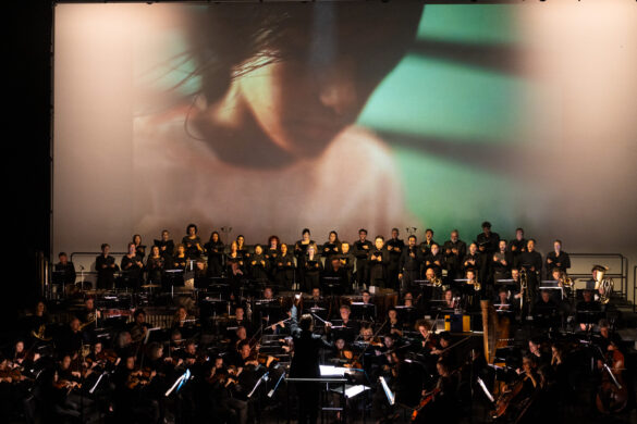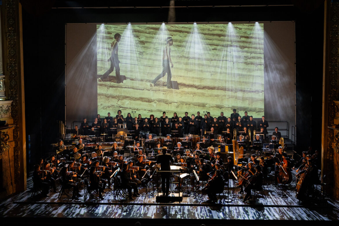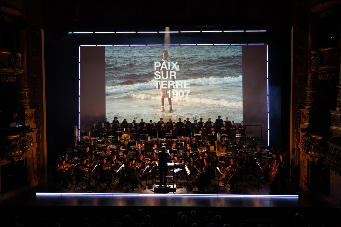Peace, Peace, Peace ! La formule incantatoire rythme le déroulé d’Exils #2, le concert donné à l’Opéra-Comédie avec l’Orchestre national et le Chœur de l’Opéra de Montpellier, dirigés par Vitali Alekseenok. En contrepoint des pièces interprétées, les performances vidéo de Juliette Deschamps sensibilisent le public à cette douloureuse thématique sans entrer dans le champ mortifère de l’actualité.