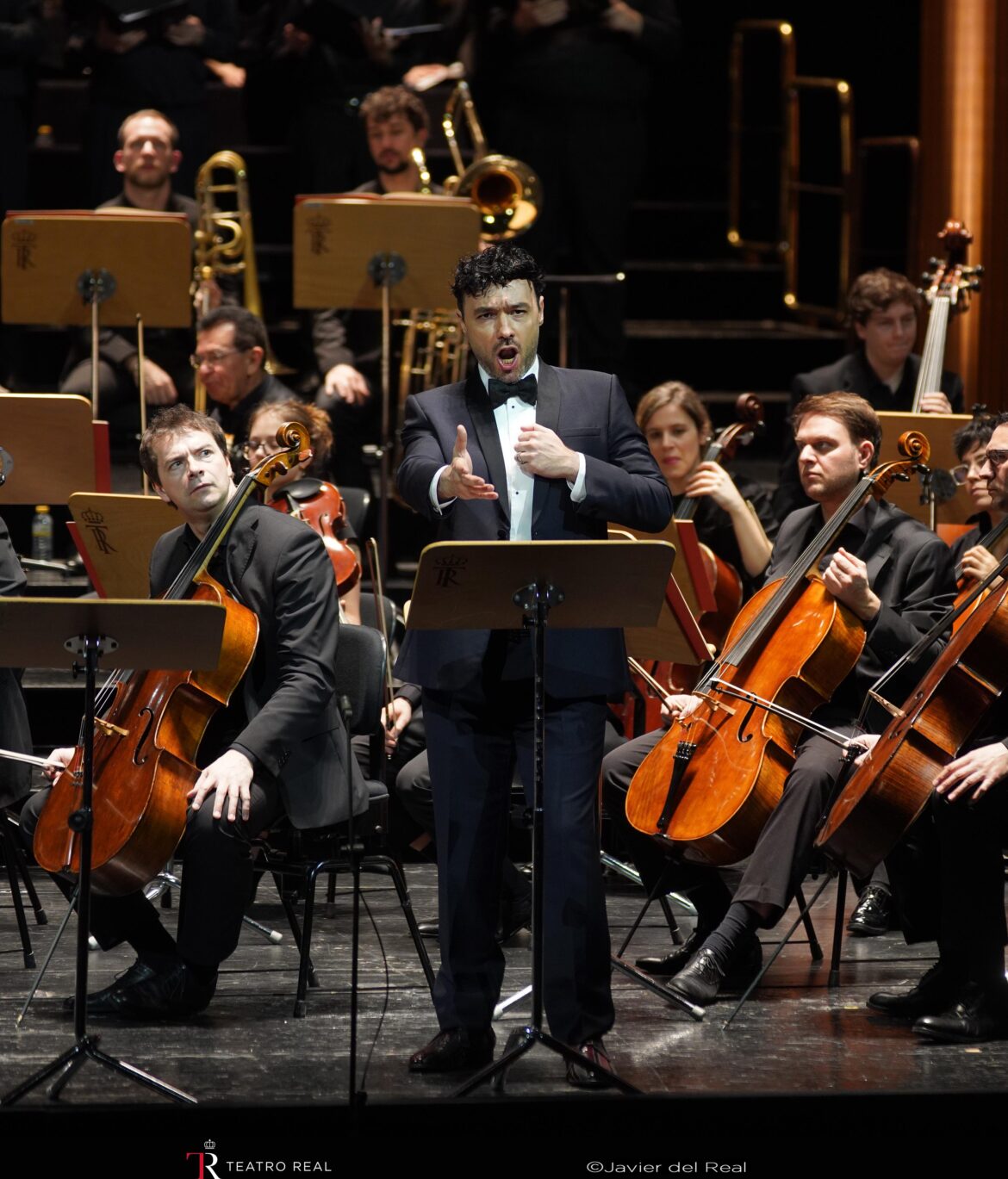 L’orchestre, expressif et stylé, a su rendre justice à cette partition qui fait constamment alterner fougue, élans dramatiques et lyrisme empreint de tendresse. Sans minimiser le dramatisme, voire la part de violence que contient la partition, c’est ce lyrisme que semble (superbement) privilégier le chef Francesco Lanzillotta, particulièrement à son aise dans ce répertoire : dès l’ouverture, le superbe solo de violoncelle (interprété par Simon Veis) apporte une couleur élégiaque et tendre, prélude à une direction soucieuse d’équilibre entre ardeur dramatique et lyrisme cantabile. Les chœurs du Teatro Real, remarquablement préparés par José Luis Basso, ont donné toute leur rugosité aux interventions des brigands, souvent sollicités et toujours percutants.