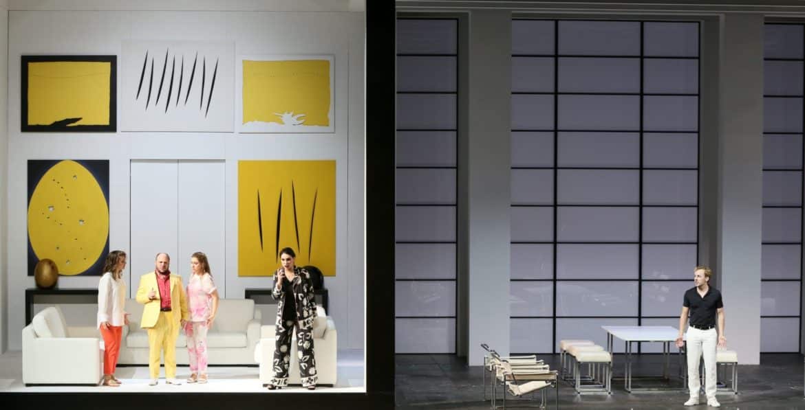 Si ce spectacle est une belle réussite, c’est avant tout parce que le festival, comme souvent, a fait le pari de la jeunesse, en confiant l’opéra de Cimarosa aux mains de Pier Luigi Pizzi et de Michele Spotti. Jeune, Pier Luigi Pizzi et ses 89 printemps ? Plus que jamais, tant la vision du Mariage qu’il propose est fraîche, vive, imaginative : même si le désir de parer son patronyme d’une particule est sans doute moins prégnant dans la bourgeoisie du XXe siècle qu’au tournant du XVIIIe, la transposition de l’action dans le monde contemporain s’opère très naturellement et sous la houlette de Pizzi, tous les chanteurs s’avèrent être de vrais acteurs, drôles et convaincants.