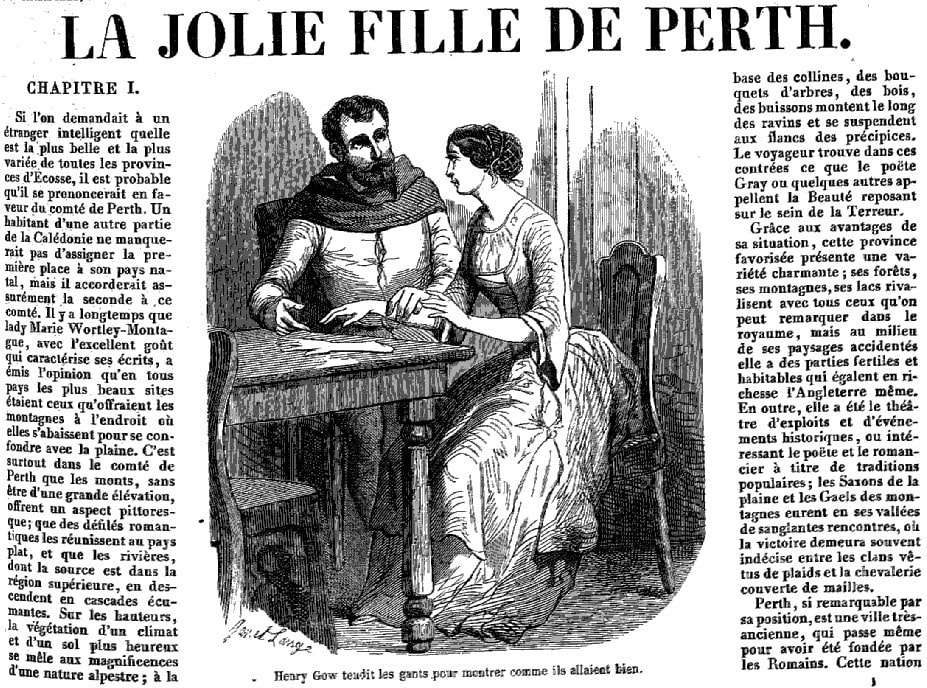 Relecture très éloignée du roman de Scott, il met en scène les amours de l’armurier Henry Smith et de la belle Catherine Glover que contrarient l’apprenti Ralph, jaloux de Smith, et le Duc de Rothsay, dont Mab la bohémienne cherche à se venger. Dernière manifestation en France de cette Scottomanie qui s’empare de l’Europe à partir des années 1810, le livret accumule des situations chères à Saint-Georges, qui recycle ici paresseusement ses vieilles recettes ou emprunte celles qui font le succès des opéras du temps. La scène de la folie de Catherine à l’acte IV dérive de la Lucia di Lammermoor de Donizetti et celle de l’effet de mémoire cathartique final qui lui rend sa raison de la Martha de Flotow dont Saint-Georges conçoit le livret. Même le personnage de Mab est emprunté à son ballet-pantomime La Gypsy d’après un roman de Walter Scott. Enfin, le livret hésite entre les quiproquos et les déguisements de l’opéra-comique et les grandiloquences du grand-opéra. Placé sous l’égide de ce « fou joyeux » de Carnaval qui favorise le renversement des valeurs et la gloutonnerie et donne lieu à deux chansons à boire et à l’éloge des plaisirs pendant trois actes, il finit par camper un jugement de Dieu peu crédible qui oppose l’armurier et Ralph l’apprenti gantier pour laver l’honneur perdu mais intact de la pauvre Cateau, victime des manigances de Mab.