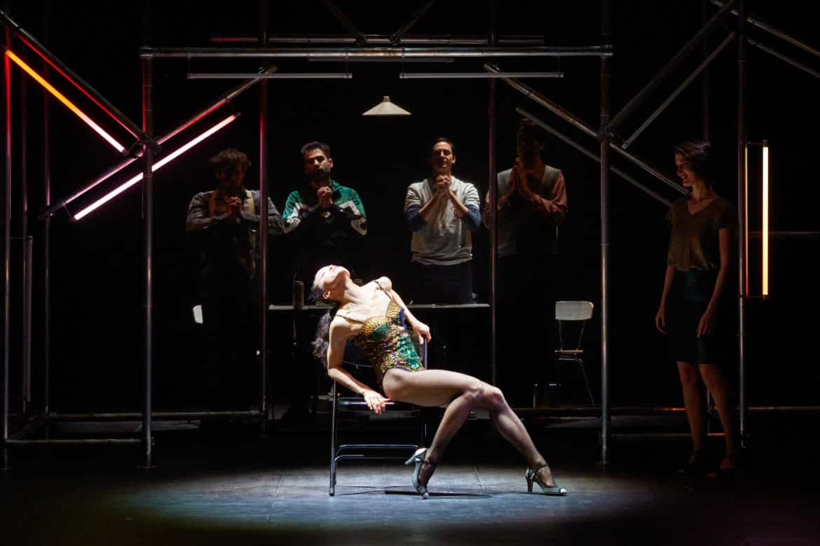 Le ballet-dansé de Weill et Brecht, dernière œuvre du duo de Grandeur et décadence de la ville de Mahagonny, alors en exil à Paris au début de l’année 1933, est ici présenté dans sa version chambriste (réduction à 15 instruments par les soins de HK Gruber). Jacques Osinskyi a eu l’idée de l’entrecouper de trois intermèdes constitués par des standards des songs de Weill : « Complainte de la Seine », « Je ne t’aime pas » et « Youkali ». De la quarantaine de minutes habituelle, le spectacle atteint ainsi l’heure, durant laquelle un mélange de sentiments contradictoires nous assaille.