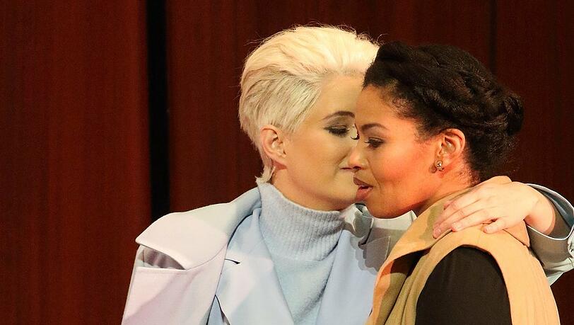 Le plateau vocal est lui aussi très inégal. Si Bálint Szabó est un Kuno percutant, si Tareq Nazmi a toute la profondeur et l’autorité requises par l’Ermite, Milan Siljanov dispose d’un timbre trop rond et trop peu incisif pour donner tout leur sel aux sarcasmes dont il accable le pauvre Max. Anna Prohaska fait exister Ännchen essentiellement scéniquement : elle est souvent peu audible au premier acte, et par la suite, l’émission vocale révèle à plus d’une reprises d’assez nombreuses irrégularités. Kyle Ketelsen en Kaspar nous semble relever de l’erreur de distribution. Ce ne sont pas les qualités du chanteur qui sont en cause, mais la nature même de sa voix, peu adaptée à ce rôle démoniaque : où sont la noirceur du timbre, la puissance vocale, l’arrogance de la projection ? Si le jeu de l’acteur est extrêmement convaincant, le chant reste nettement en-deçà de ce qu’on peut attendre du personnage. A contrario, Pavel Černoch dispose a priori des moyens de Max. Pourtant, en cette soirée de première du moins, l’émission manque de franchise, de facilité, de ductilité… Méforme passagère ? La plus applaudie sera finalement Golda Schultz qui, après un début un peu timide, offre un portrait sensible et nuancé d’Agathe, avec notamment un « Und ob die Wolke » poétiquement phrasé.