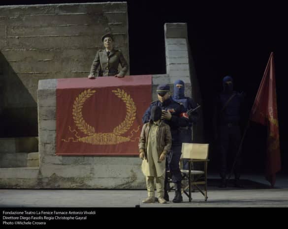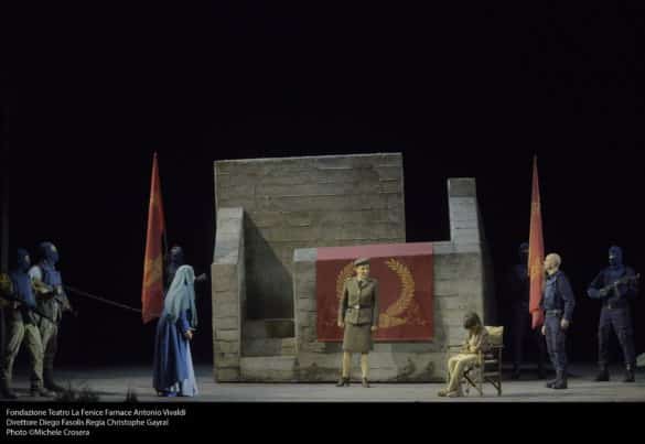 La redécouverte des opéras de Vivaldi, initiée au début des années 2000 (notamment grâce à la remarquable intégrale chez Naïve) a apporté la preuve que la prolixité du Prêtre Roux ne signifiait ni réemplois systématiques ni répétition inlassable. Non, tout ne se ressemble pas dans Vivaldi et le chef Diego Fasolis l’a éloquemment démontré ce jeudi 8 juillet au Teatro Malibran à la tête de l’Orchestre de La Fenice. Le chef luganais connaît bien l’œuvre, pour l’avoir enregistrée chez Erato (version de 1738). Rendons hommage à sa direction enthousiaste et tout en nuances qui évite cette uniformité sonore des cordes trop souvent entendue dans des interprétations avides d’une vaine virtuosité. Diego Fasolis tricote merveilleusement les passages martiaux ou du moins dramatiques avec l’émotion mélancolique qui imprègne toute l’œuvre et qui finit par triompher. Le chef a choisi de s’appuyer sur la version de Pavie (1730) et de proposer ainsi une « solution vénitienne » moyennant quelques ajustements – confiés à son assistant et complice Andrea Marchiol, au continuo – en particulier dans les récitatifs. Dans cette version, Farnace est un ténor (alto dans la plupart des autres versions), tout comme Pompeo. Voilà qui souligne fort intelligemment l’équilibre vocal où s’affrontent, s’opposent ou se conjuguent voix masculines et voix féminines.