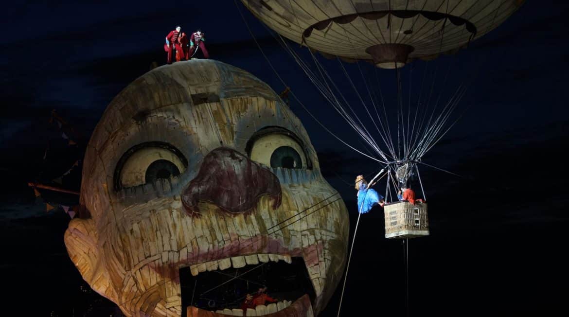 Situer Rigoletto dans un cirque n’est pas une nouveauté : Robert Carsen y avait déjà pensé en 2013 au Festival d’Aix-en-Provence. Mais le décor contribuait alors à exposer la scandaleuse crudité de l’histoire ; ici, à Bregenz, pour la première fois sur la scène flottante du lac de Constance et devant une foule de 7000 spectateurs, les intentions sont tout autres : gigantisme et spectacle sont les maîtres. Il ne s’agit certainement pas de se livrer à grand raffinement musical ni à une exploration psychologique des personnages, qui restent des marionnettes dans un spectacle destiné avant tout à « être vu ». D’un coût de huit millions d’euros, la scénographie de Philipp Stölzl capte l’attention du public par un déploiement de gigantisme, d’audaces technologiques, de lumières et d’acrobaties unique sur la scène lyrique mondiale.