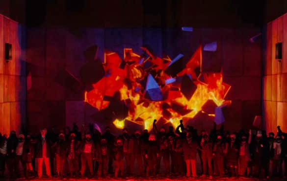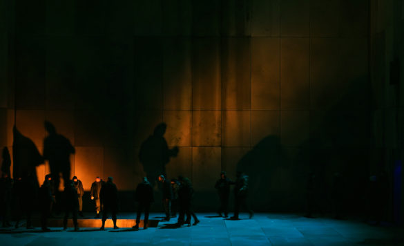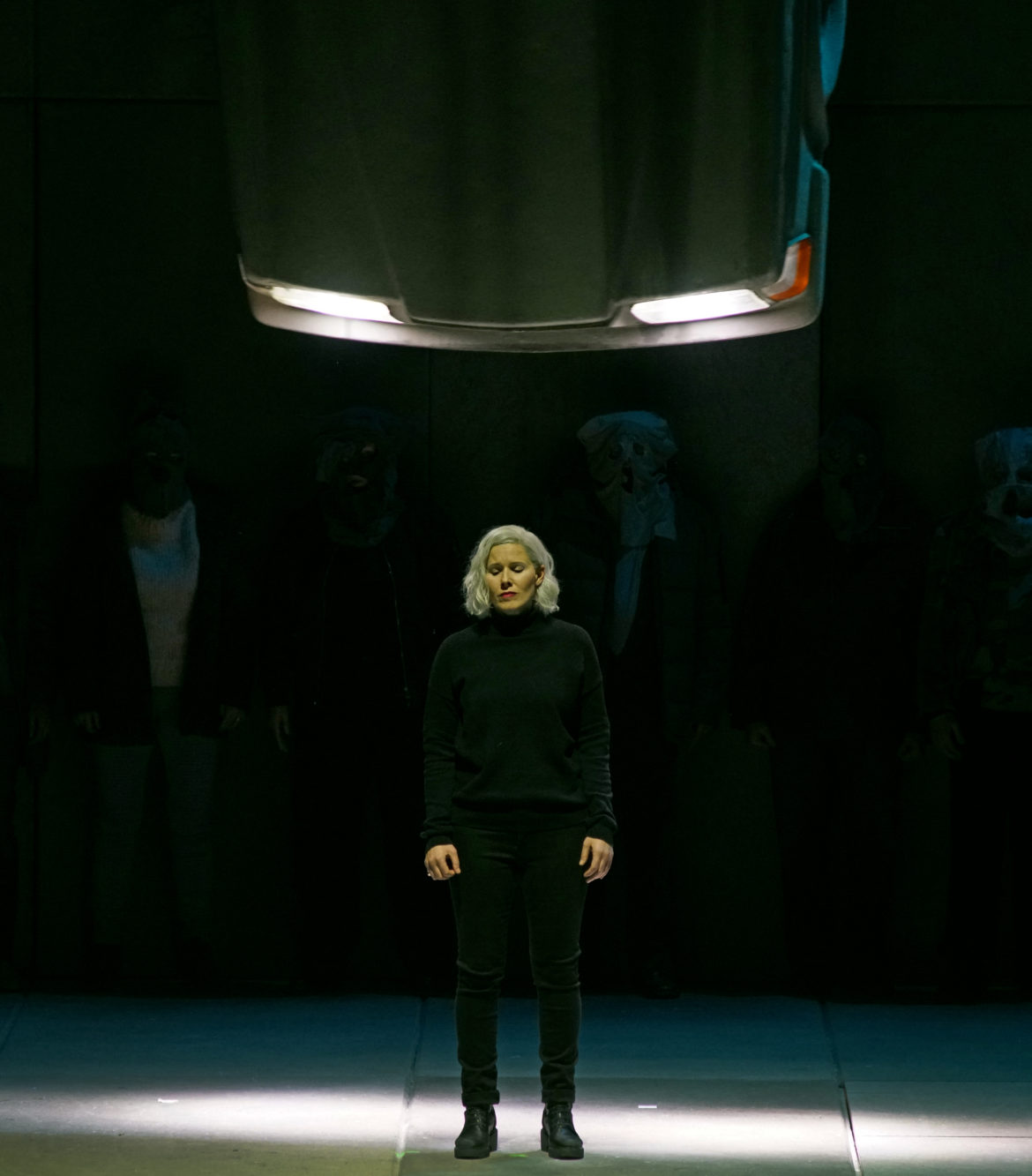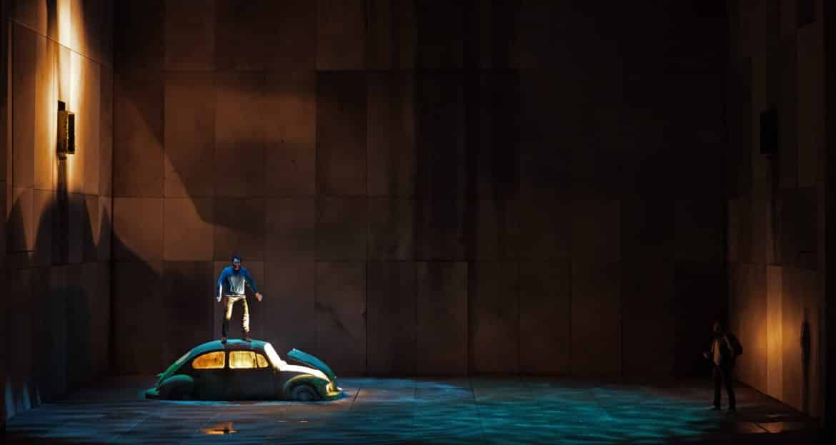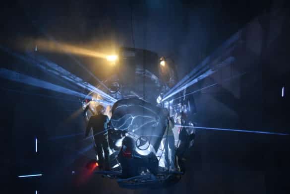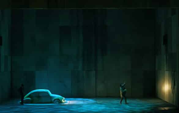 Or, si la mise en scène de Christophe Coppens, à ses premières armes dans un titre du grand répertoire, affiche un peu de tout cela, ce n’est pas que de cela qu’il s’agit. Et si, comme le rappelle le programme de salle, nous sommes effectivement confrontés à une transposition « au cœur d’une secte ou d’une religion » où priment « le béton et les automobiles », cette conception fonctionne, et fonctionne très bien. Au cours du déroulement de l’action, jamais nous n’avons eu l’impression d’assister à l’étalage d’un parti pris gratuit ou d’un amoncellement de vulgarités sans queue ni tête. Au contraire, entre le béton et les voitures, il y a bien la place pour des moments d’un esthétisme entièrement assumé.
