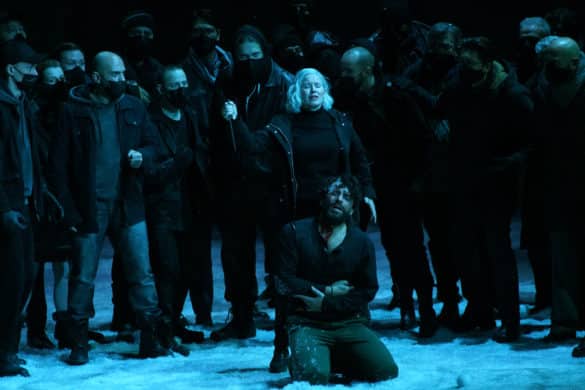 Superbe vocalement et musicalement mais mise en scène totalement anachronique et qui ne sert pas les chanteurs. Peu de beauté visuelle, pas de beaux tableaux…Tout reste dans l’ombre,, Si le but de cette mise en scène et de détourner le spectateur de tout l’aspect visuel quand on vient à l’opéra, c’est gagné. Mais autant faire une version concert…