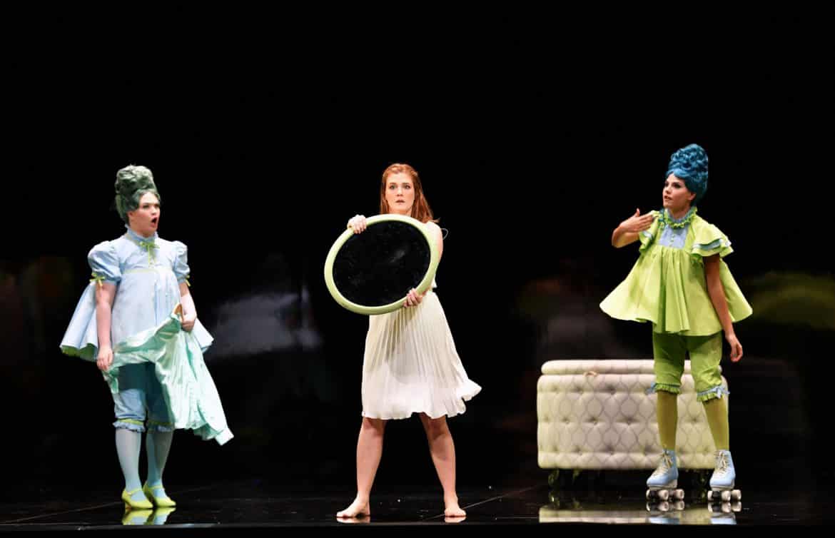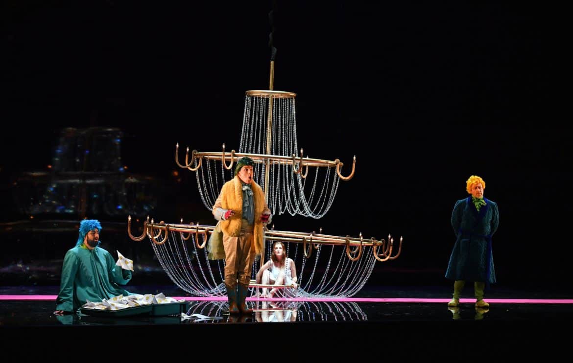Clorinda et Tisbe, respectivement incarnées par Serena Sáenz et Polly Leech ont parfaitement rempli leurs contrats. Il est vrai que leurs rôles ne sont pas bien mis en avant dans la partition, mais elles les ont néanmoins assurés avec grande qualité. Les deux véritables bémols de la soirée reviennent plutôt aux deux rôles intermédiaires. Premièrement, nous ne saurions véritablement que dire du rôle d’Alidoro, tenu par Dominic Barberi. Il aurait fallu pour cela que nous l’ayons entendu un peu plus. Si l’écriture rossinienne est connue et critiquée pour mettre en place une bataille acharnée entre l’orchestre et les chanteurs (d’après Berton), il semble alors qu’elle ait été ici perdue. En cause : une voix gonflée et donc sans harmoniques. Le constat est presque le même pour Dandini (Ilya Silchukou) qui, en plus de problèmes récurrents de rythme, a soulagé son rôle de quelques phrases, laissant le chant libre à l’orchestre avant de rentrer au milieu des phrases suivantes. Enfin, nous regretterons que, dans l’ensemble des ensembles, les chanteurs n’ont jamais été ensemble. Nous tenons en revanche à souligner la très belle prestation de la basse bouffe Don Magnifico (Carlo Lepore) à qui tout a réussi : remarquable agilité vocale de sa coloratura au service de l’exigeant belcanto rossinien, sans qu’en pâtissent ni la puissance ni la résonnance, et (truffe sur le tournedos) un concitato à toute épreuve que pourraient envier les plus grands rappeurs actuels. Antoniozzi nous paraît ainsi être une ressource précieuse pour incarner ces voix rossiniennes si périlleuses. Son jeu théâtral est de la même veine, bien qu’il nous faille regretter un élément propre à sa mise en scène — nous avons en effet pu remarquer que sa direction d’acteur est un peu trop inspirée de l’illustre mise en scène filmique de Jean-Pierre Ponnelle et du jeu Paolo Montarsolo. Ainsi avons-nous pu assister à divers copiés-collés, au point où nous nous sommes demandé si la  metteure en scène avait, pour ce rôle, abandonné l’idée d’en avoir une vision personnelle.