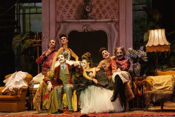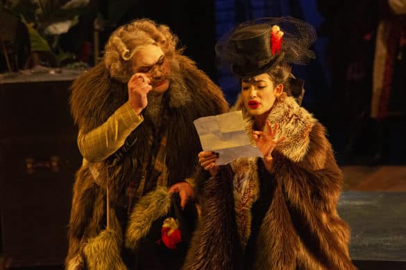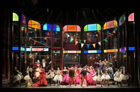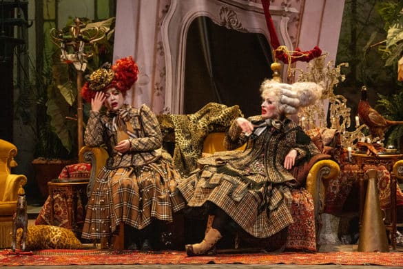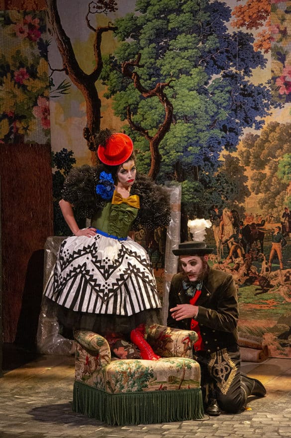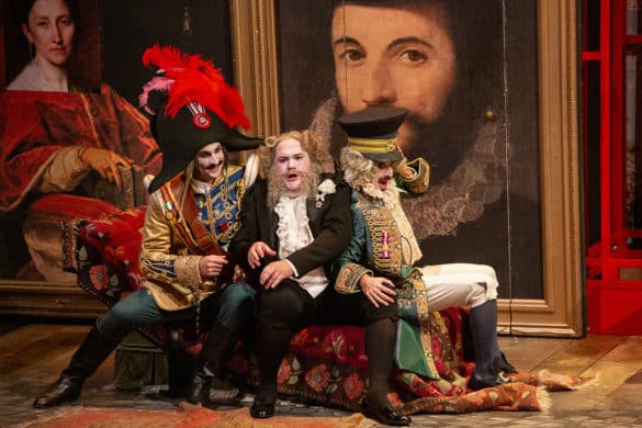 Quant à la mise en scène de Christian Lacroix, elle souffre selon nous de prendre place dans des décors peu élégants, relevant plus du bric à brac assez inesthétique (surtout aux actes I et II) que d’un choix cohérent. Les costumes, en revanche, sont superbes et pleins de fantaisie. Même si le jeu d’acteurs a de toute évidence été très travaillé, il manque selon nous, ici ou là, un surplus de folie et d’absurdité qui ferait basculer le spectacle dans le non-sens absolu qu’appellent ces aventures pleines de quiproquos plus loufoques les uns que les autres. Mais en l’état, le spectacle ravit les spectateurs : que demander de plus en cette période de fêtes, où l’on a bien besoin de s’étourdir pour oublier une morosité ancrée depuis si longtemps maintenant dans notre quotidien ?