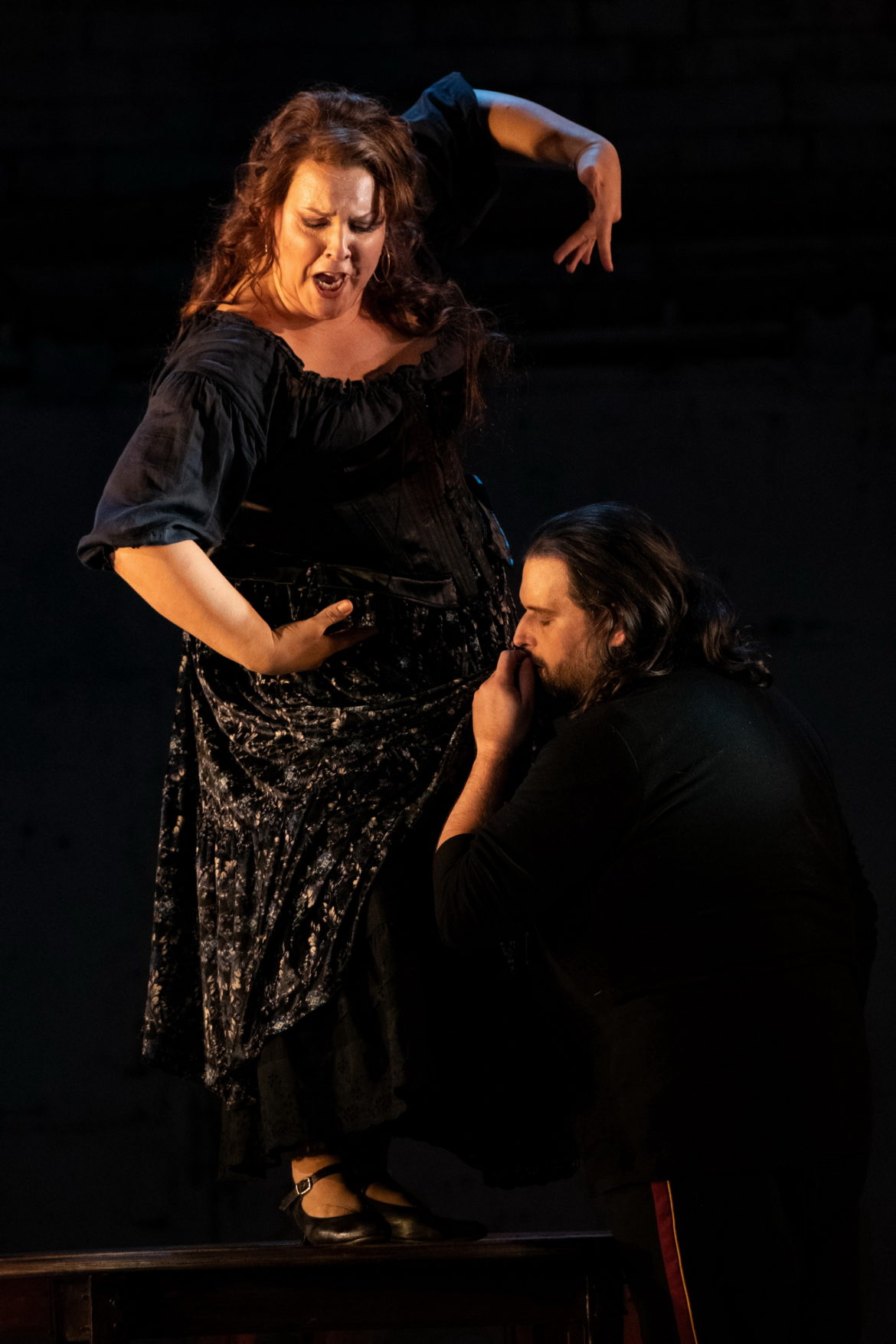 La vraie révélation de cette soirée, c’est la Carmen de Marie-Nicole Lemieux. Dans ce rôle, elle est tout simplement immense et captivante. Elle l’aura pourtant attendue cette prise de rôle scénique. Attendue et redoutée. Vingt ans de carrière, un vaste éventail de répertoires allant de Haendel à Debussy en passant par Rossini, Massenet ou Mahler, du lied, de la mélodie et déjà Carmen en version de concert en 2017 au Théâtre des Champs-Élysées. Pourtant, c’est au Théâtre du Capitole de Toulouse que sa Carmen prend véritablement vie et, on l’espère, pour longtemps et souvent, très souvent ! Marie-Nicole Lemieux, c’est bien sûr une voix, sombre et brillante à la fois, une formidable puissance, un savant contrôle des registres, des trésors de souffle mais ce que l’artiste propose dans Carmen, c’est plus qu’une interprétation, c’est une incarnation. Investie par son personnage, elle donne l’impression de l’habiter. Chaque mouvement de son corps et c’est Carmen qui bouge. Chaque inflexion vocale et c’est Carmen qui parle. Sa formidable volonté de vivre, sa liberté d’être sont aussi celles de Marie-Nicole Lemieux sur scène. La mezzo-soprano vient de trouver un rôle à sa démesure. Carmen vient de trouver une très grande interprète à sa mesure. Cette Carmen est gouailleuse, pulpeuse, troublante, parfois impudique, touchante, gourmande et on en redemande.