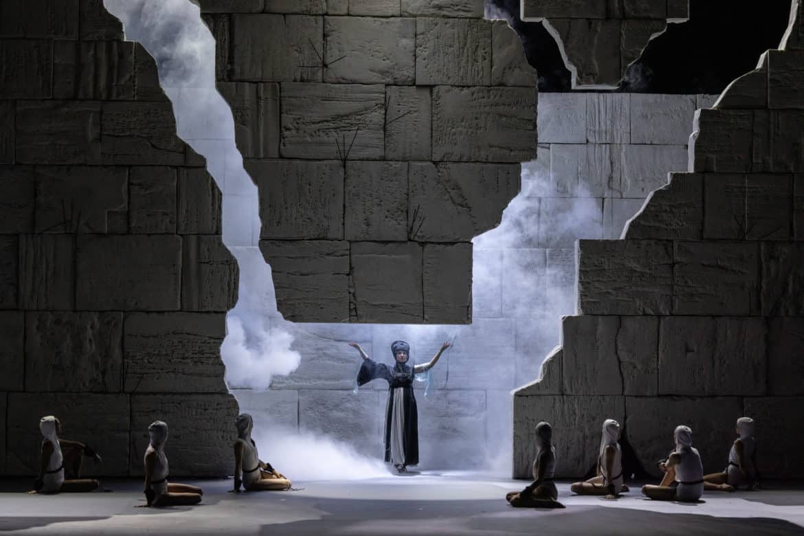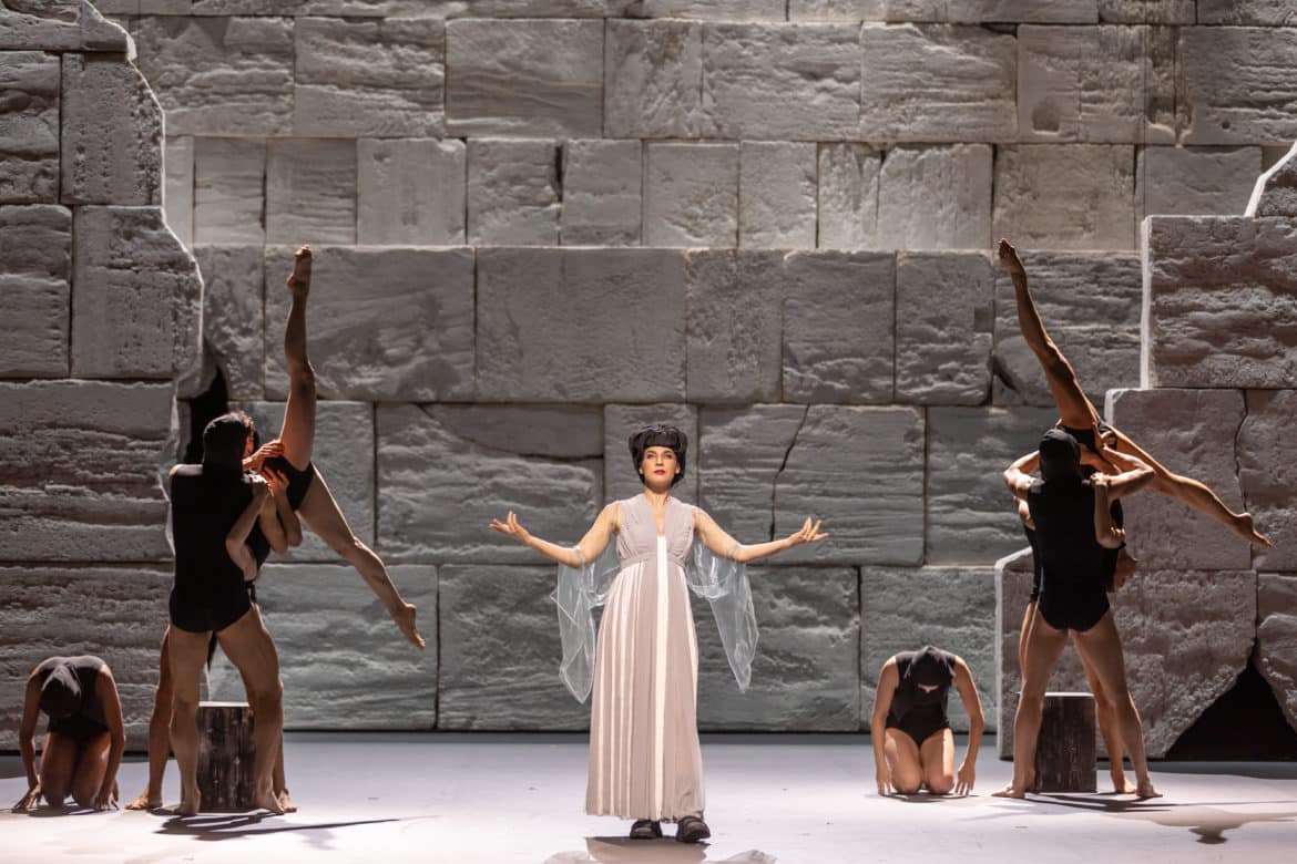 Dans le rôle-titre, Mathew Newlin condense sans doute les primats herméneutiques du spectacle. Si le timbre du ténor américain n’est pas sans menues ingratitudes, son élan déclamatoire, d’une constance sans faille au fil d’une incarnation au demeurant exigeante, impose une présence souveraine dans les méandres des failles affectives du personnage, qui s’affirme également dans une performance corporelle exceptionnelle chez un chanteur. En Cybèle, Giuseppina Bridelli privilégie la couleur d’un mezzo à l’intonation sombre, façonnant une autorité mêlée d’une acuité certaine de la sensibilité. Plus que le rayonnement vocal, circonscrit à sa typologie, c’est l’évolution et les ressacs du sentiment qui retiennent l’attention, et que l’on retrouve dans l’incarnation de Sangaride par Ana Quintans, dont l’antagonisme s’entend d’abord dans la naturelle clarté d’une ligne, qui s’oppose à l’émission plus charnue de sa rivale.