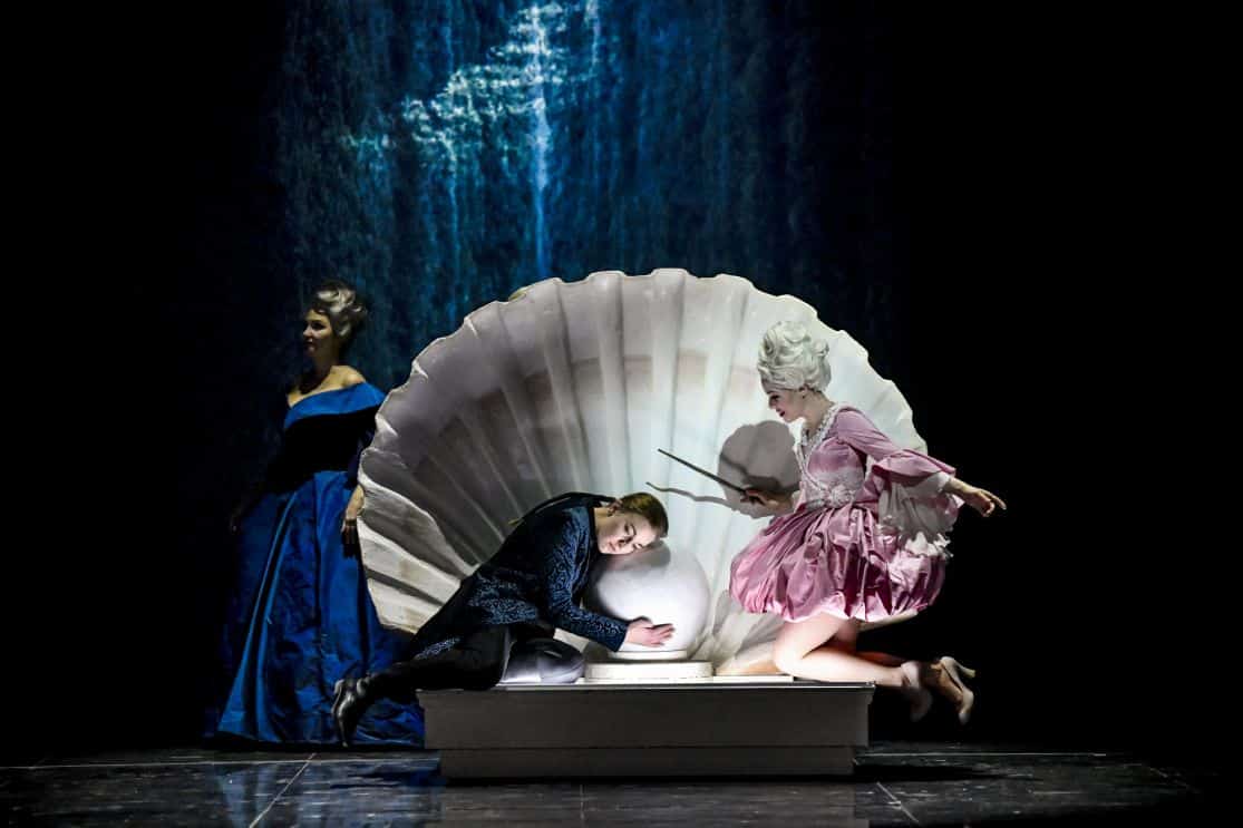Pourtant, la mise en scène de Jiri Herman et le choix des costumes d’Alexandra Gruskova nous entraînaient dans un monde merveilleux d’un baroque luxuriant, avec ses bêtes sauvages (ces anciennes conquêtes qu’Alcina transforma en lion, éléphant, autruche inénarrable ou pingouin drolatique…), ses éphèbes aux immenses ailes d’anges entourant l’entrée majestueuse de la magicienne comme avec sa vaste conque blanche faisant de Morgana un printemps rose sorti des ombres maléfiques d’Alcina,.