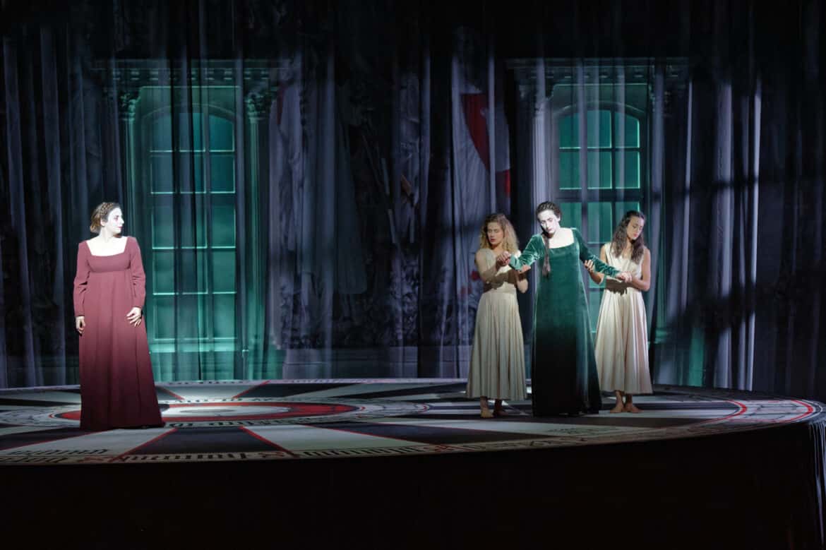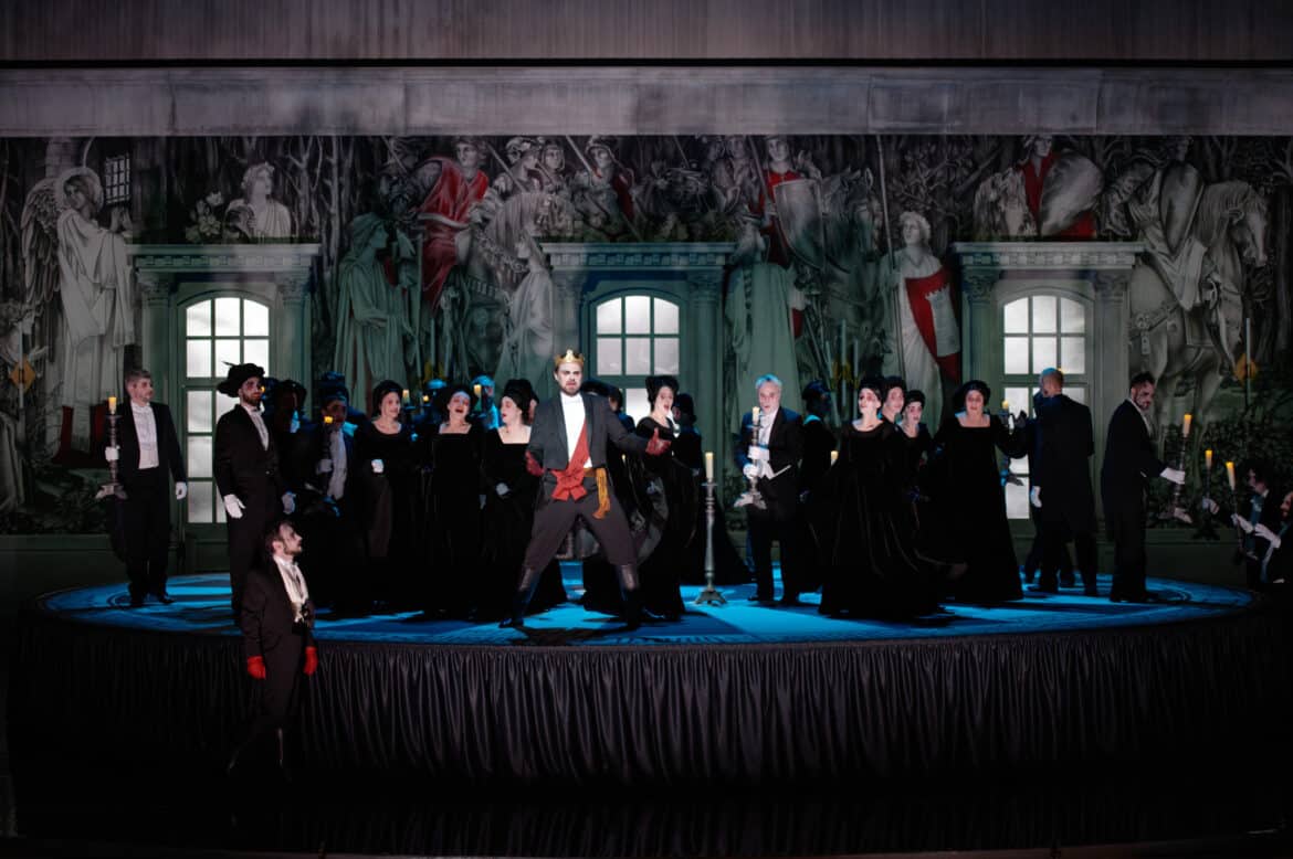 Ce Lancelot est de plus magnifiquement défendu par ses interprètes, la mise en scène inventive de Jean-Romain Vesperini, l’impressionnante scénographie de Bruno de Lavenère et les chorégraphies poétiques de Maxime Thomas. On aime cette tournette à l’usage parfois acrobatique, cette ambiance sépulcrale et fuligineuse et cette direction d’acteurs toute en tension et sobriété. On ne sait pas toujours comment interpréter ce dialogue visuel entre le moyen-âge et le XIXe siècle… On échappe souvent à cette lecture d’un fatum où les personnages seraient les pièces d’un jeu de société qui les dépasse et pourtant, tout cela est d’une terrible efficacité. Ce spectacle très intelligemment travaillé parle plus au cœur qu’à l’intellect et c’est peut-être le plus grand service qu’il pouvait rendre à l’œuvre oubliée de Joncières.
