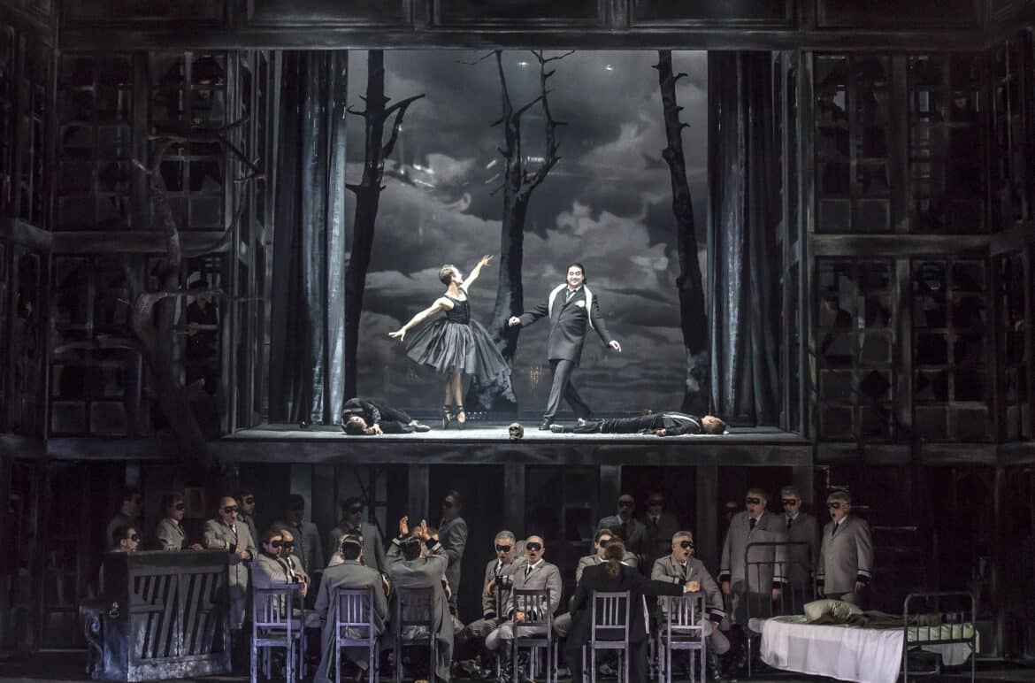 La crise sanitaire nous avait empêché de revoir sur la scène marseillaise, en octobre 2020, la scénographie conçue et réalisée par Olivier Py et son équipe habituelle de collaborateurs, Daniel Izzo (assistant et chorégraphe), Pierre-André Weitz (décor et costumes) et Bertrand Killy (lumières). Nous en avions été quelque peu frustré – malgré l’excellence du plateau vocal réuni alors – tant la force du propos scénique, lors de la création à l’Opéra de Nice, avait fonctionné pour nous comme un électro-choc.