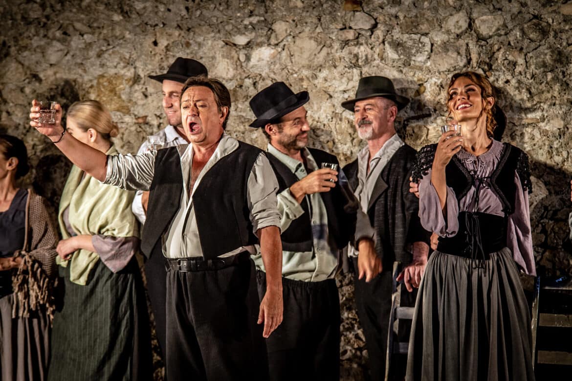 Après les succès enregistrés avec Rigoletto en 2018 (Pierre-Yves Pruvot et Amélie Robins) La Périchole en 2019 (Marie Kalinine) et La Fille du Régiment en 2021 (Jeanne Crousaud), Cavalleria Rusticana de Mascagni est à l’affiche de l’édition 2022 avec l’une des étoiles françaises actuelles de l’art lyrique : Catherine Hunold, spécialiste du répertoire wagnérien (Isolde dans Tristan und Isolde, Sieglinde et Brünnhilde dans Die Walküre, Ortrud dans Lohengrin, Kundry dans Parsifal,  Senta dans Le Vaisseau Fantôme) mais qui s’est également illustrée avec Ariadne dans Ariadne auf Naxos, Marie dans Wozzeck, Kostelnička dans Jenufa (récemment à Toulouse), tout en servant un large répertoire français : La Damnation de Faust de Berlioz, La Nonne Sanglante de Gounod , Françoise de Rimini de Thomas, Le Mage et La Vierge de Massenet, Les Barbares de Saint-Saëns, Dialogues des Carmélites de Poulenc, Bérénice de Magnard, Pénélope de Fauré, Sigurd de Reyer, Ariane et Barbe Bleue de Dukas…Catherine Hunold a reçu le 13 juin dernier le prix de la personnalité musicale de l’année, décerné par le Syndicat de la critique Théâtre, Musique et Danse. Saluons le tour de force de l’Opus Opéra de Gattières d’avoir réussi à se l’attacher pour sa prise de rôle en Santuzza ! La cantatrice l’aborde avec l’investissement dramatique qui sied et que l’on attend dans pareil emploi. La voix puissante s’appuie sur une tessiture longue avec des aigus percutants et des graves sonores (puisant dans les ressources de la fréquentation des Lady Macbeth ou Leonora de La Forza del Destino).