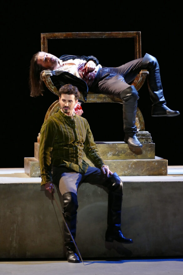 Associant une remarquable élocution et un physique avantageux, le Macduff de Jérémy Duffau, jadis Malcolm au Théâtre des Champs-Élysees en 2015, incarne un opposant très intériorisé, en particulier dans son air de l’acte IV, malgré quelques hésitations à peine perceptibles dans le haut du registre, agrémenté d’un allegro héroïque à souhait, grâce aussi au soutien du chœur et à la réplique que lui donne le Malcolm de Néstor Galván.