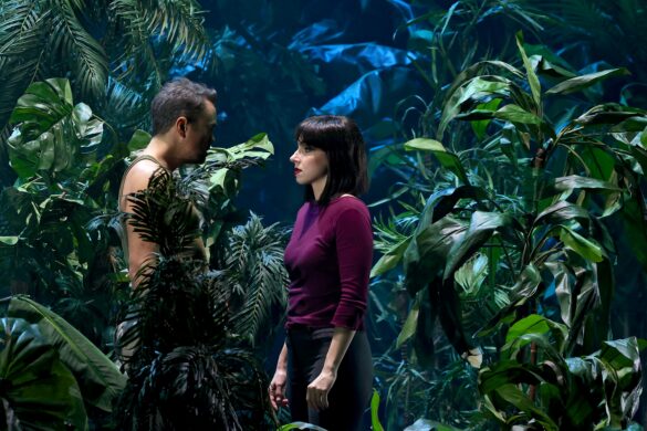 L’opéra-comique de Berlioz, peu connu de ce côté des Alpes mais brillant, drôle et musicalement inventif, valait véritablement la peine de cette reprise et il faut en savoir gré à l’Opéra de Gênes, qui prend également le risque, pour la première production de la saison, d’une mise en scène peu conventionnelle. Malheureusement, la proposition de Damiano Michieletto, qui a d’ailleurs essuyé quelques huées lors de la première, pèche par beaucoup d’aspects, notamment la confusion des signes (le personnage de Somarone, interprété par Ivan Thirion, mal dessiné, s’agite par exemple sur la scène, dès l’Ouverture, sans qu’on comprenne bien quel est son rôle véritable) , et une certaine lourdeur symbolique (des papillons articulés qui vont et viennent des cages en verre pour signifier la liberté, Adam et Eve pour signifier l’amour hors des normes et de la religion…). Plus embêtant, certains choix de mise en scène posent en outre des problèmes scéniques et musicaux. Le choix de l’usage des micros de pied pour les récitatifs, au-delà du fait qu’ils créent du statisme et une certaine artificialité de ces moments d’échanges qui devraient, au contraire, être vifs et enlevés, ont le gros inconvénient de provoquer une baisse d’intensité entre les récitatifs et le chant (évidemment non sonorisé), qui renverse la dynamique naturelle de la pièce. Un autre détail, mais toujours irritant : la manie des metteurs en scène à vouloir déshabiller les chanteuses… Si le « striptease » de Hero à l’Acte I peut avoir une fonction scénique (elle ôte ses vêtements de ville pour endosser la robe de mariée), celui de Béatrice à l’Acte II, en proie à la passion, semble en revanche totalement gratuit. Il y a cependant de beaux moments dans le spectacle, notamment le jeu autour de l’accessoire du matelas au premier acte, d’abord vertical, qui chute ensuite à l’horizontale, et finalement coupé en deux, provoquant la scission de la scène en deux parties, pour symboliser la brûlante attraction-répulsion entre les deux protagonistes principaux. Le fameux duo nocturne de Héro et Ursule est également magnifiquement mis en valeur par un décor végétal, tropical et tout en clair-obscur, où aucun élément ne vient distraire de la déambulation onirique des deux chanteuses. Était-il cependant vraiment nécessaire de faire chuter et donc détruire toutes ces plantes, chaque soir, par la bascule spectaculaire de la scène se transformant en cage ? Les dernières scènes sont plus réussies, mettant en exergue l’ironie mordante du livret de Berlioz sur les clichés amoureux et opératiques.