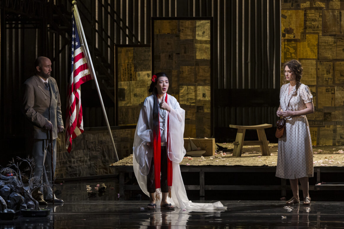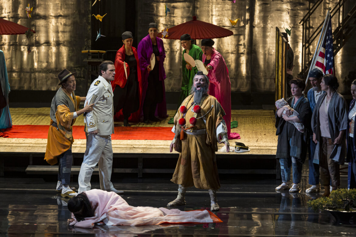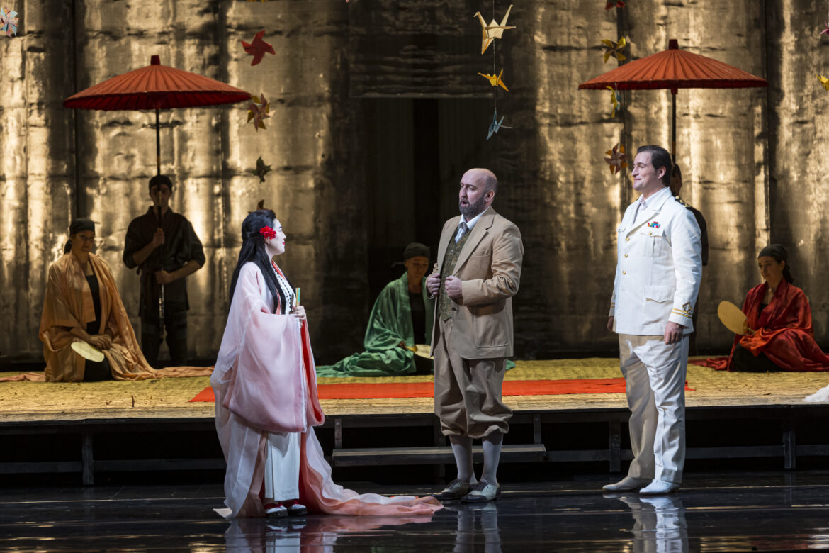 Madame Butterfly, c’est la rencontre de deux mondes qui ne comprennent pas et de deux êtres révélés dans l’inouï de la nature humaine. À elle, l’amour sublimé, à lui, la veule bassesse, à toutes et tous, des contrastes culturels flagrants emprunts d’une cruauté certaine. Cette production dans la mise en scène de Yoshi Oïda se base sur la version Brescia 1904 de la partition de Puccini en reprenant des éléments issus de la version originale de la Scala de 1904. Ce choix met en relief des personnages et situations supposés secondaires mais éclaire d’une manière crue les violences ordinaires presque quotidiennes qui conduiront à un drame plus grand que nature. On entendra ainsi Pinkerton insulter les serviteurs de Butterfly en les comparant à des mouches qui boivent des liqueurs nauséabondes, se moquer de la famille de Butterfly et de l’oncle Yakusidé, ce même oncle et la cuisinière qui interrompront le commissaire en pleine cérémonie de mariage ou Pinkerton, encore, dédaigner la famille de sa nouvelle épouse, une famille n’hésitant pas à se moquer elle aussi de ses membres dont Cio-Cio San. Une version en deux actes qui souligne également la longue déchéance de Butterfly. La pauvreté et les privations ne seront que les débuts d’une descente aux enfers dont les portes se fermeront sur l’arrivée de la nouvelle femme de Pinkerton annonçant presque innocemment que l’enfant issue de cette union alla giapponese doit partir avec elle en Amérique, chose « certes triste, mais la meilleure chose à faire ». Des évènements bien loin d’être mineurs, courts par leurs durées formelles mais puissamment marquants par ce qu’ils montrent des petitesses humaines.