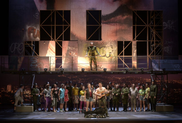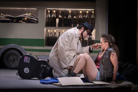 Était-ce dû à l’enjeu de la soirée ou plutôt à ce qui pose vraiment problème dans la production : le mélange des niveaux de langue. Car le livret a été réécrit par Agathe Mélinand pour ce qui concerne les dialogues parlés, dans une version actualisée façon époque contemporaine. Et la vulgarité assumée du couple Périchole-Piquillo au premier acte (dans les mots comme dans l’intonation) est vraiment too much. D’autant que, sans transition, dès qu’à l’acte suivant la Périchole se retrouve au cœur du palais du Vice-Roi, la voici très grande dame, au langage châtié et à l’allure princière. Et le pire est bien le décalage entre ce langage et la musique d’Offenbach.