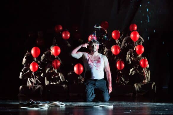 Mise en espace, s’il en est, à laquelle concourent les interventions chorégraphiées de la danseuse Christine Sollie et les textes poétiques de Peter Verhelst récités par le comédien Johan Leysen. Si ces derniers ont peu de chose à voir avec la trame de l’opéra, ils ne dérangent pas particulièrement le déroulement de l’action, à quelques exceptions près, telles l’attaque du duo entre Elvira et Don Carlo, à l’acte I, ou encore la transition de ce même numéro vers le trio avec le héros et celle entre l’air de Silva et le finale I. Et force est de constater qu’ils n’apportent pas grand-chose à l’équilibre de l’ensemble du spectacle. Une annonce, non surtitrée, est lue à l’entracte, entre le II et le III. On comprend qu’il est question de la guerre en Ukraine et la dénonciation du conflit apparaît par moments au cours de la soirée.