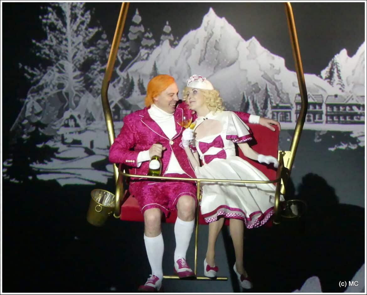 Sans revenir sur des éléments largement évoqués par la critique, l’année dernière, lors de la création à Lausanne, insistons tout de même sur l’intelligence du projet, totalement abouti, mêlant avec bonheur – et parfois subversion – le délicieux et nostalgique « entre-deux » du cinéma hollywoodien de l’âge d’or (ah, ces clins d’œil aux girls des films chorégraphiés par Busby Berkeley !), des grandes revues façon Ziegfeld Follies et des cabarets berlinois de la République de Weimar. On est ici face à un coup de maître qui, sans toutefois donner un cours magistral ni vouloir plus en dire que ce qu’une œuvre de pur divertissement n’a à montrer, entraîne le public dans un monde où, comme l’écrit Gilles Rico dans le programme de salle, « chaque personnage est vu à travers une lentille satirique » et où, « l’espace d’un séjour, les passions amoureuses se font et se défont, les désirs se réalisent, les plaisirs se consomment et les transgressions s’autorisent ». Oui, nous n’avions jamais vu, avant cette production, une Josepha si émancipée et, à l’occasion, si coquine, ni un Leopold le plus souvent entre détresse et désenchantement ayant à l’occasion recours aux paradis artificiels… Ici, Sylvabelle et Clara ne sont pas des godiches ni des oies blanches mais des jeunes femmes modernes, maîtrisant au besoin l’art du selfie et le verlan d’usage chez nos ados !
