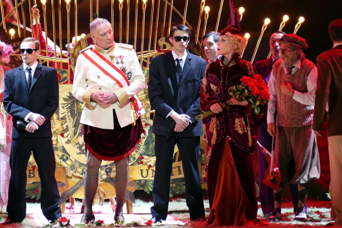 On aurait tort de penser que cet ouvrage, certes parfois plus proche de la Revue que de la grande opérette viennoise, ne nécessite pas des artistes rompus à l’art de la projection et de la prononciation. Sur ce plan, seulement, il faut avouer que le compte n’y est pas toujours et que le surtitre – en français ! – n’est pas un luxe inutile…Mais ne boudons pas trop notre plaisir car nous tenons ici une distribution à laquelle le propos scénique va comme un gant !