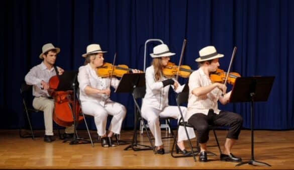 Enfin je voudrais souligner particulièrement le travail extraordinaire du quatuor qui a accompagné seul l’intégralité de l’œuvre, avec une justesse et une précision redoutable. Les quatre musiciens n’ont jamais flanché malgré la fatigue, faisant preuve d’une endurance et d’une qualité technique et musicale parfaite, dirigée de main, ou devrais-je dire plutôt d’archet de maître par Marius Mosser, premier violon et directeur musical du projet.