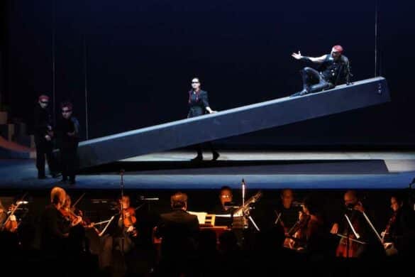 L’idée de flanquer chaque chanteur d’un danseur qui amplifie (!) ou complète (?) ce que l’interprète exprime est en soi discutable en théorie et devient irritante en pratique : le chanteur prend pour ainsi dire appui sur un autre corps, exprimant ce qu’il est censé traduire par sa voix, tandis que le spectateur est distrait par les contorsions du danseur. Cela en devient presque humiliant pour l’interprète vocal, comme s’il n’avait aucune confiance dans ses capacités expressives ou, pire encore, dans la dramaturgie de la parole chantée. Ainsi, le spectacle se transforme en une performance oratoire en costume dans laquelle le chanteur entre, chante son aria planté au centre de la scène et face au public tandis que son alter ego – les membres, par ailleurs talentueux, de la Dacru Dance Company – se déhanche dans les mouvements hip hop imaginés par Marisa Ragazzo et Omid Ighani. Il n’y a pas d’interaction entre les personnages, et finalement… pas de théâtre.