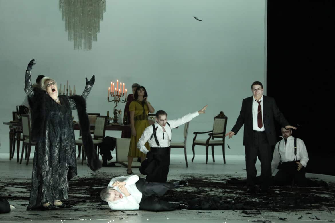 On avait eu un avant-goût de cette production – initialement prévue en 2020 mais annulée pour cause de pandémie – grâce à la captation sans public réalisée par la RAI en février 2021. Le découpage télévisuel en gommait l’aspect chorégraphié autant que les interactions entre les personnages. Restitués dans leur globalité scénique, ils transforment cet Einakter en un fascinant ballet mortifère, dans le prolongement de l’Elektra de Robert Carsen à Bastille. Comme son collègue canadien, Michieletto semble convaincu que le dépouillement sied à Strauss.