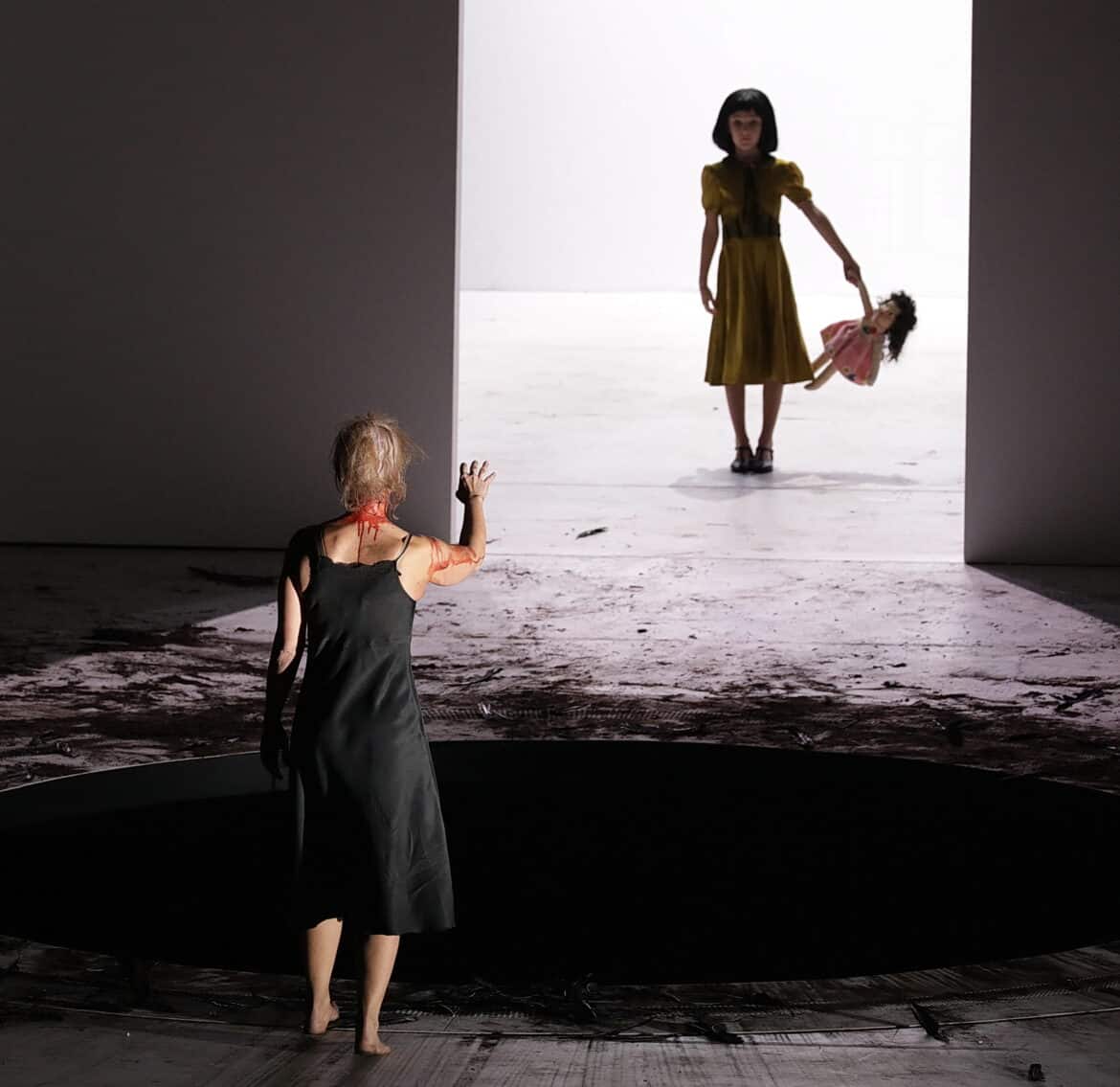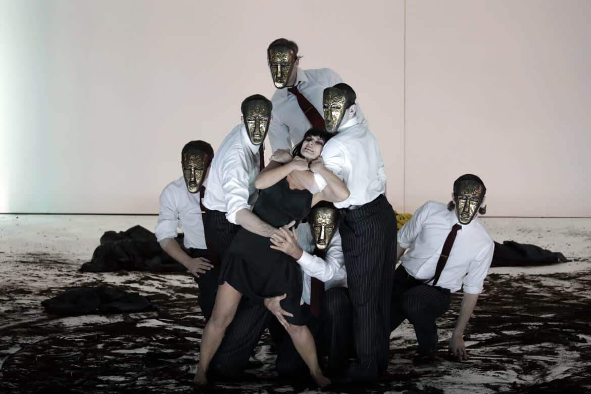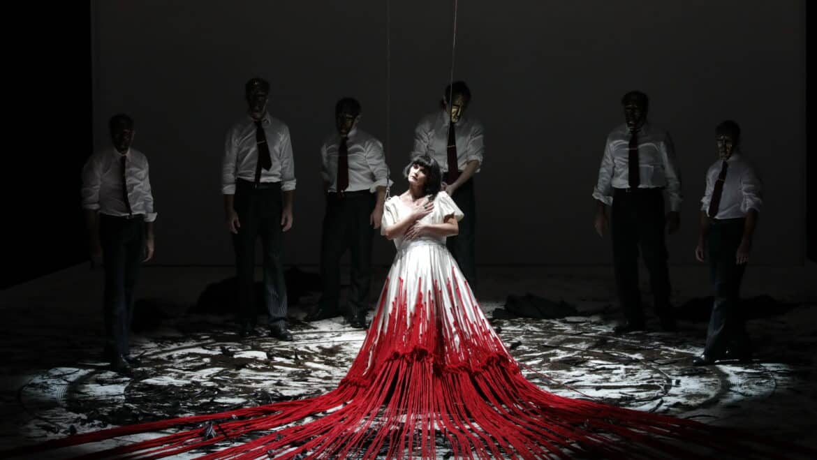 Convaincu, aussi, que la généalogie de Salomé éclaire son destin et l’acte fou qui scelle sa mort. À l’histoire déjà connue – l’assassinat de son père Hérode Philippe, tétrarque de Judée, par son oncle Hérode Antipas, amant de sa mère Hérodiade –, il ajoute un détail troublant ignoré par Strauss mais présent chez Wilde – Hérode Philippe passa douze ans enfermé dans la citerne où se trouve désormais le prophète Jochanaan – et suggère, par des apparitions de Salomé enfant, la plaie jamais refermée d’un inceste.  Dès lors, la frêle silhouette de la soprano lituanienne Vida Miknevičiūtė (qui en est à sa cinquième incarnation de l’héroïne straussienne, après Vienne, Melbourne, Moscou et Helsinki) prend une signification d’une force redoublée : Salomé n’est pas une tentatrice perverse qui se joue des hommes par sadisme narcissique mais une femme-enfant perdue, violentée, coupée de ses racines. Se justifie alors pleinement la transformation étonnante de la Danse des sept voiles en Danse des viols, par des hommes portant le même masque doré que le beau-père de la princesse. Et lorsque Salomé leur échappe, c’est pour revêtir une robe blanche, souvenir d’une pureté perdue, qui révèle peu à peu d’immenses filaments rouge sang…