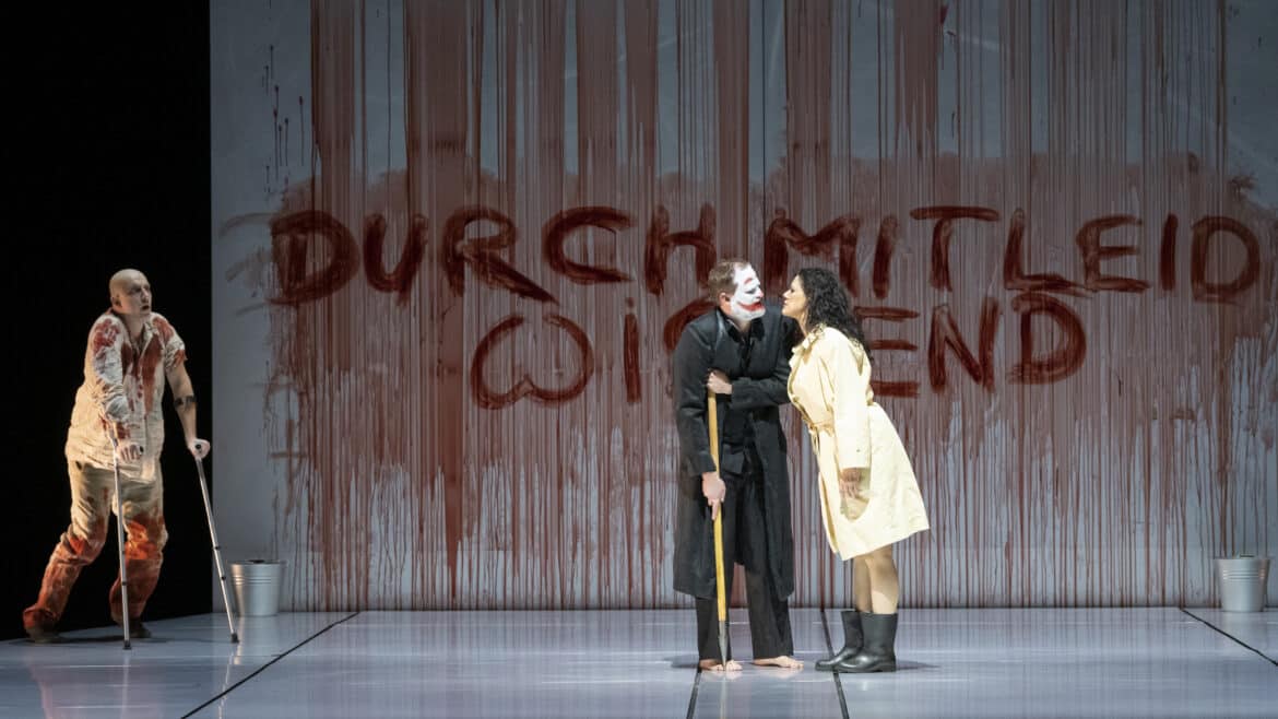 Kundry porte la tâche de culpabilité biblique de toutes les femmes, marque à laquelle Wagner ajoute la duplicité. Tanja Ariane Baumgartner (mezzo habituée, entre autre rôles, à ceux de Fricka ou d’Herodias dans la Salome straussienne) sublime ce personnage et en fait, par son talent, le pivot de l’intrigue. Les autres interprètes offrent une prestation de qualité, mais s’imposent difficilement en marge de ce duo. Sur scène, aux côtés de Kundry et Parsifal, se distinguent notamment Tareq Nazmi – Gurnemanz – et Christopher Maltman – Amfortas -, tous, ainsi que les forces du Grand Théâtre, étant remarquablement dirigés par Jonathan Nott.