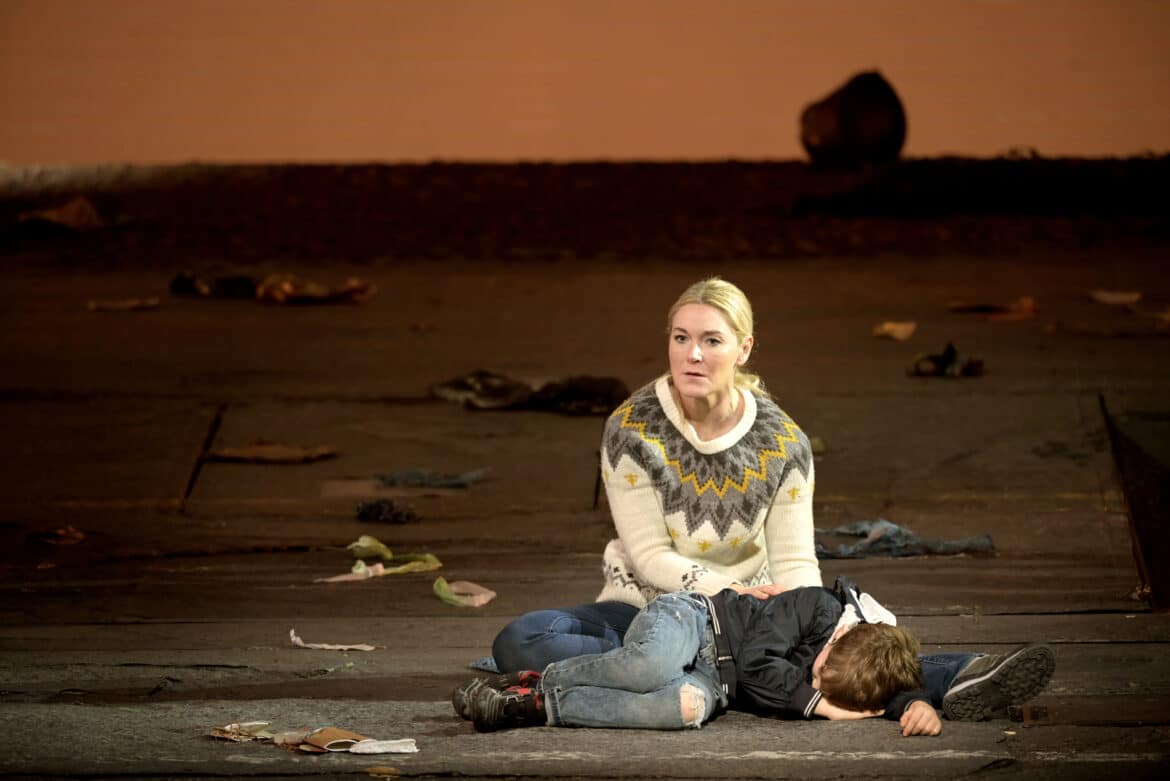 C’est aussi à Ken Loach que l’on pense en voyant dans quel contexte économique Warner situe le drame : on est ici dans l’Angleterre des déclassés, des laissés pour compte du libéralisme néo-thatchérien, les vitrines des boutiques sont barrées de planches, la digue jonchée de débris, tout suinte la crasse, l’abandon, la médiocrité. Tableau convaincant dans sa noirceur sans remède mais qui présente le défaut d’atténuer les contrastes entre Grimes et la communauté qui l’accable – un miséreux parmi les miséreux. Et puis, pourquoi avoir gommé l’intense poésie maritime qui sous-tend l’opéra de bout en bout ? Si elle parvient à exister, c’est seulement le temps d’intermèdes symphoniques symptomatiquement détachés du déroulement de l’histoire puisqu’ils sont joués rideau baissé, avec projection des titres. Quant à l’élément marin en lui-même, il est pour ainsi dire absent sur scène. N’était une toile de fond figurant faiblement la mer et une carcasse de barque, le Peter Grimes de Deborah Warner et son décorateur Michael Levine pourrait aussi bien se dérouler dans une ville minière du Yorkshire. Pourquoi pas, mais aussi : dommage.
