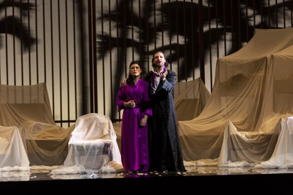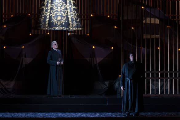 D’un grand opéra, on attend plus que du grand, on espère du très grand, on oserait même toucher de temps en temps au grandiose. L’époque n’est plus à la débauche de moyens, l’abondance de 1840 n’a plus cours de nos jours. Réfrénons nos ardeurs et profitons simplement de la belle et simple mise en scène de Valentina Carrasco, de l’ingénieuse scénographie de Carles Berga et Peter Van Praet et des lumières souvent poétiques de ce dernier.