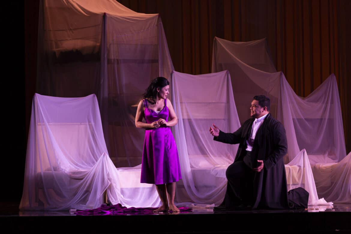 La distribution réunie à Bordeaux convainc totalement, à commencer par Pene Pati qui brille de mille feux dans le rôle de Fernand. La voix du ténor samoan est claire et lumineuse, la souplesse jamais prise en défaut et sa magnifique gestion du souffle lui permet aigus longuement tenus, messe di voce et variations de nuances qui ne laissent pas de subjuguer. Pene Patti semble également être né avec un traité de diction française dans la gorge. Sa présence ici suffirait presque à éteindre le feu des réserves précédentes.