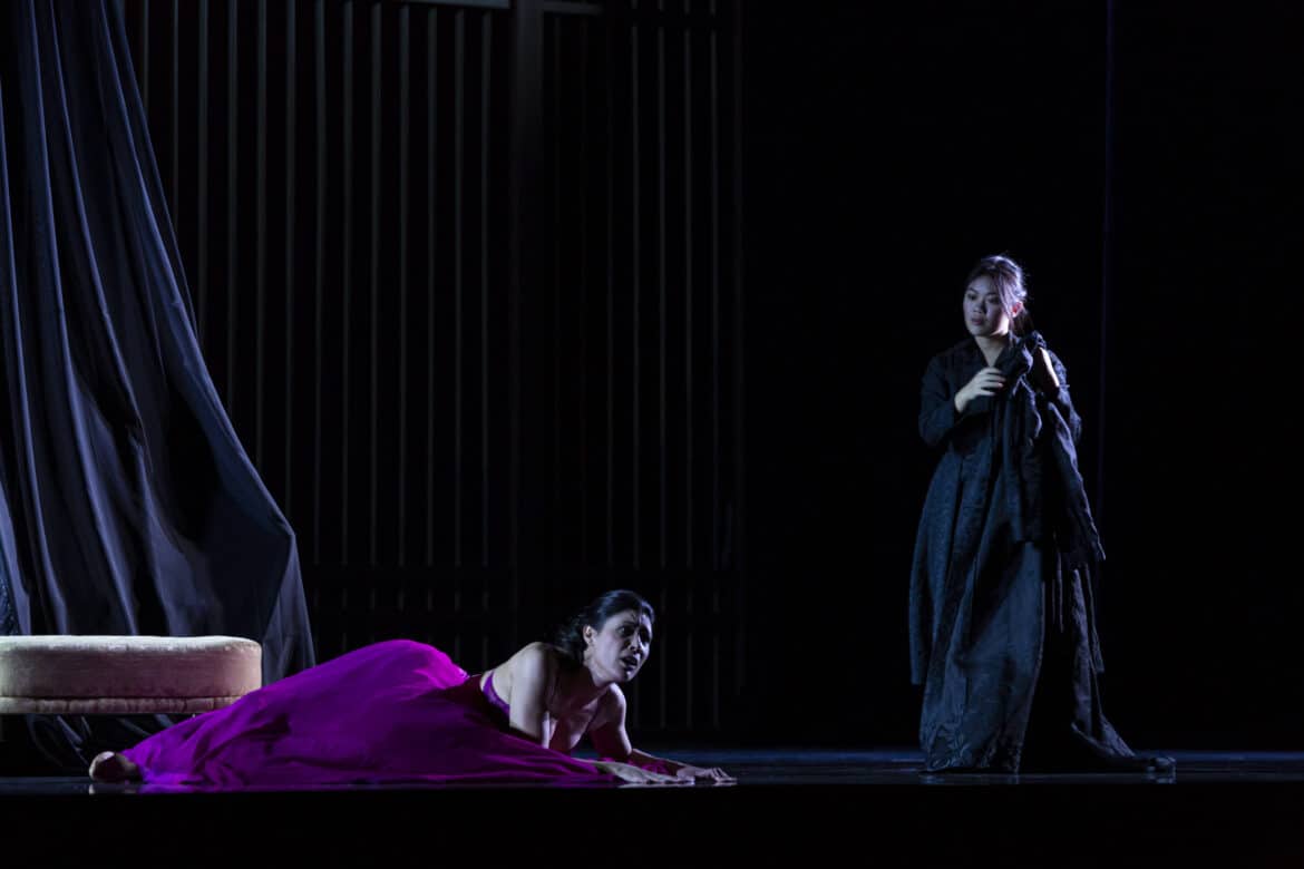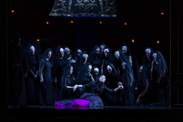 Cette Favorite, nous l’avons dit, nous est donnée dans sa version avec ballet. Comment intégrer celui-ci à l’histoire et ne pas interrompre l’action durant quelque vingt minutes ? La metteuse en scène Valentina Carrasco a décidé d’ouvrir la scène du Grand-Théâtre aux « autres favorites », des femmes d’aujourd’hui âgées de 60 à 84 ans, des danseuses non professionnelles jouant un harem qui aurait été ou qui sera celui d’Alphonse XI et qui figure le possible destin de Léonor. Cela nous vaudra une très belle scène de transâgisme interrogeant le temps qui passe, le jeunisme et la standardisation des critères de beauté. À entendre les quelques rires gênés, les murmures gentiment attendris et les applaudissements réservés à ces « favorites » à la fin du spectacle, on ne sait si le message est bien passé, mais la scène aura eu le mérite de bousculer un peu.