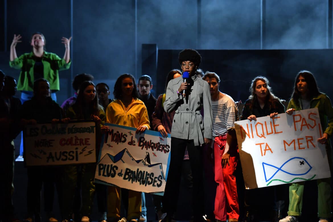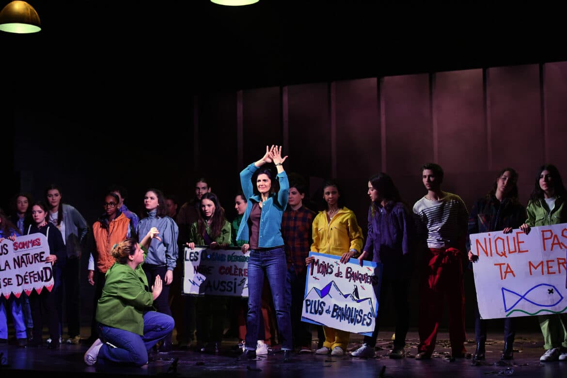 Les moments les plus convaincants sont indéniablement les chœurs, bien conçus, imprimant un élan collectif dans la mise en scène de Damien Robert, depuis la rue jusqu’à l’usine. Grâce à la préparation des cheffes de chœur Laetitia Toulouse et Guilhem Rosa, ils sont superbement interprétés par Opéra Junior. Citons pêle-mêle la comptine swinguante des enfants « Savez-vous planter la planète » et, chez les ados, la polyphonie « Le ciel est encore bleu », ou encore l’entrain de « Et un, et deux, et trois degrés ». Celui-ci pourrait-il devenir l’hymne des (véritables) manifs, post Accord de Paris ?