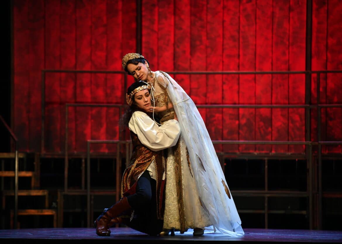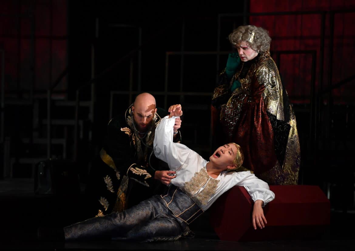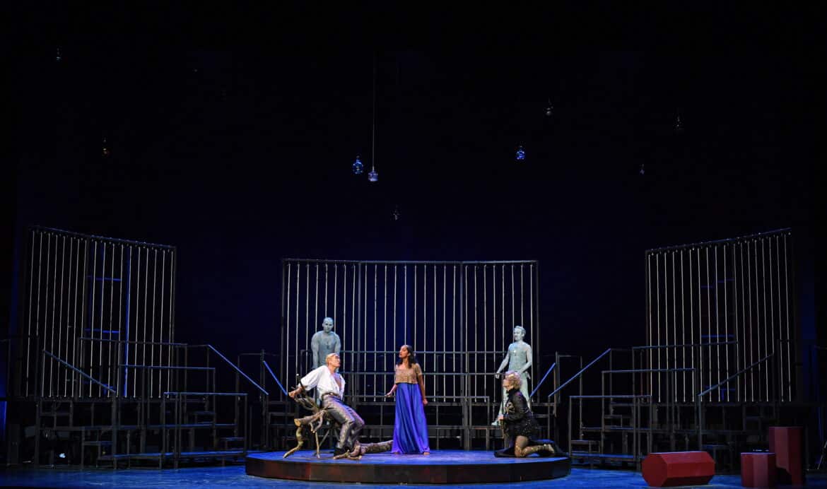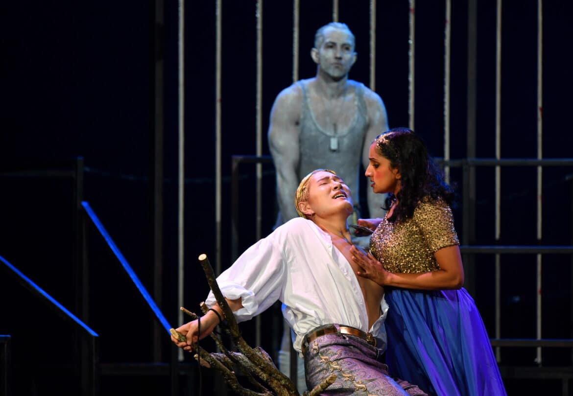 Tout commence par les noces d’Orphée (superbement chanté par la soprano Arianna Venditelli), interrompues par une annonce fâcheuse : Aristée (Kangmin Justin Kim, contre-ténor enthousiasmant malgré quelques aigus serrés), son frère, est au plus mal. Mais en réalité, Aristée est malade d’amour pour Eurydice (émouvante soprano Alicia Amo), ce qu’il avoue à la jeune mariée. Orphée, caché, entend la déclaration, fait mine de ne rien savoir. Il doute de l’amour de sa jeune épousée. Pire : il est jaloux. La belle Autonoe (touchante et subtile Maya Kherani), la femme amoureuse d’Aristée, prête à le reconquérir, se confie à Eurydice, qui a la malencontreuse idée de jouer les entremetteuses en sondant alors son beau-frère sur sa conduite en amour. Le quiproquo est total : Aristée croit qu’elle parle pour elle-même et Orphée – à nouveau caché – pense que sa femme file le parfait amour avec son frère. Possessif, il est à vif. Voulant la tuer, il est arrêté par Hercule. Déléguant sa vengeance, il charge alors, sous la menace, le pâtre Orillo d’aller tuer Eurydice. Pendant ce temps, elle, piégée, repoussant les assauts d’Aristée, est mordue par un serpent et meurt. Consternation générale. Autonoé cherche à consoler Aristée qui la repousse, songeant à mourir, inconsolable comme l’est Orphée.