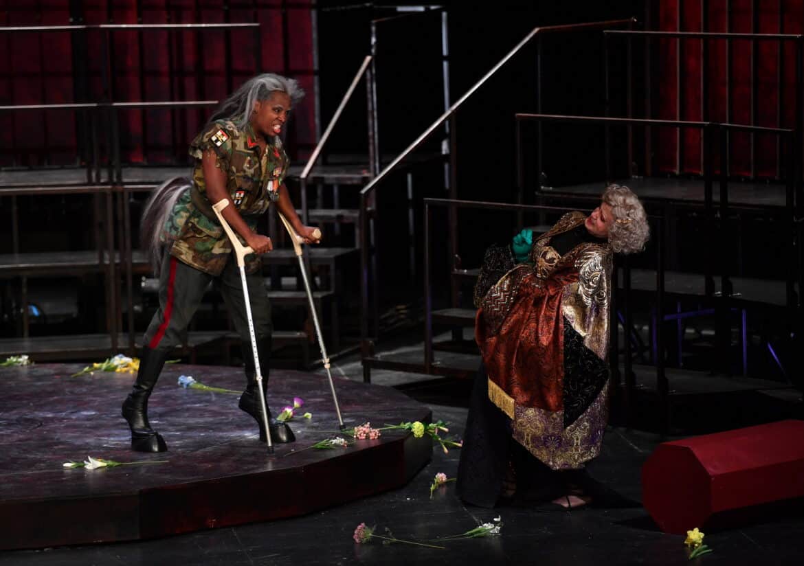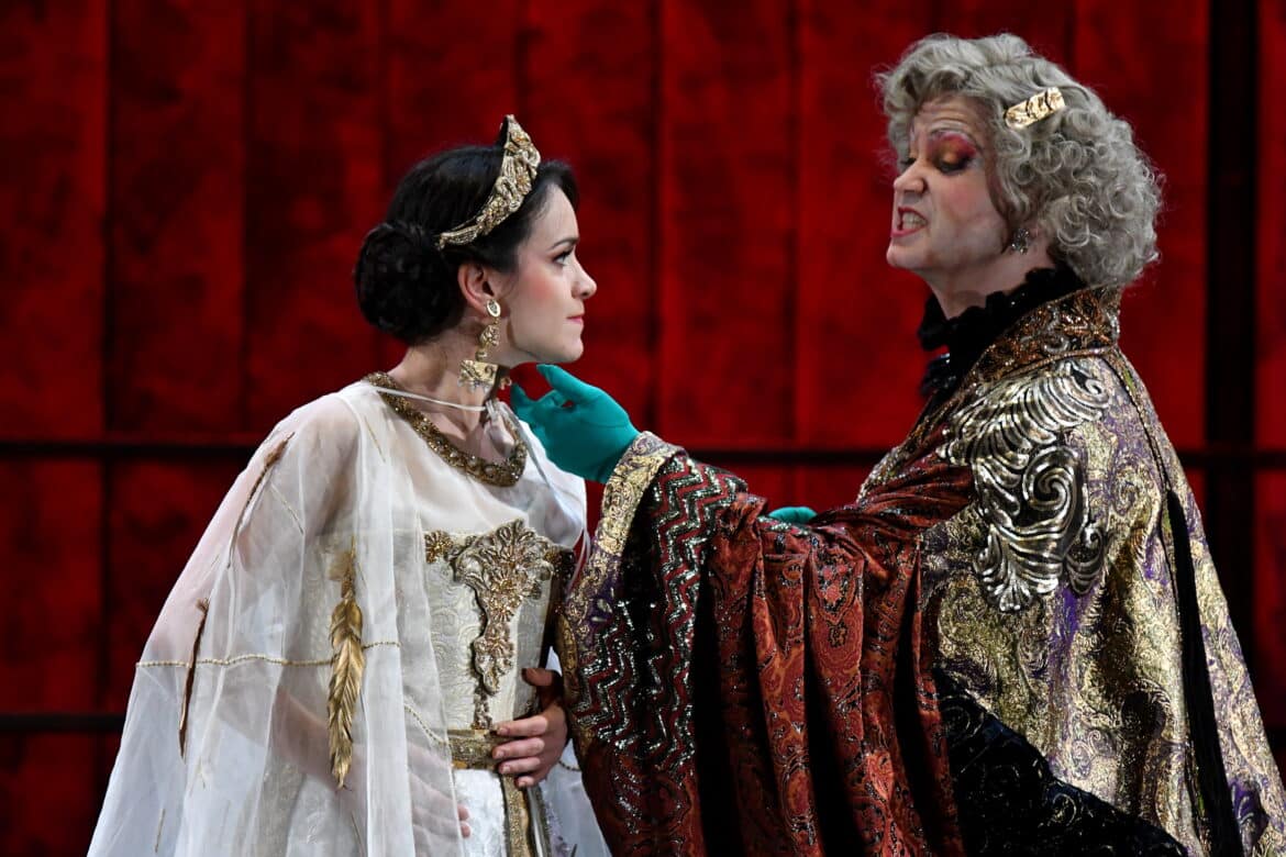Pourtant, il ne s’agit là que de l’intrigue principale. Car de multiples chassés-croisés amoureux viennent pimenter une action parfois amplement détournée. Que dire de l’ineffable Erinda, l’entremetteuse, que Sartorio confie à une voix mâle, magnifiquement campé par Zachary Wilder ? Plus tout à fait dans la fleur de l’âge, la voici qui philosophe (« Qui veut jouir doit donner… en jouissant, la beauté se fait vénale »), se prend de passion torride pour Orillo le gigolo (sémillante Gaia Petrone) et n’hésite pas à monnayer des charmes qu’elle n’a plus. Que penser de Chiron (corruscant Yannis François dans un jeu très extraverti, manquant parfois de noirceur), le tuteur d’Hercule et Achille, qui ne cesse de les morigéner sans résultats : les héros sont fatigués et préfèrent rêver d’amour. Hercule, c’est David Webb qui nous livre un bouleversant hymne à l’amour ; et Achille, c’est le contre-ténor Paul Figuier qui par son timbre anéantit l’image traditionnelle de ce vainqueur d’Hector. Et comment apprécier l’arrivée de Bacchus (Yannis François, jubilatoire), juste après la mort d’Eurydice, vantant à un Aristée désespéré les plaisirs du vin (« Allons, buvez ! Allons, jouissez ! ») ?