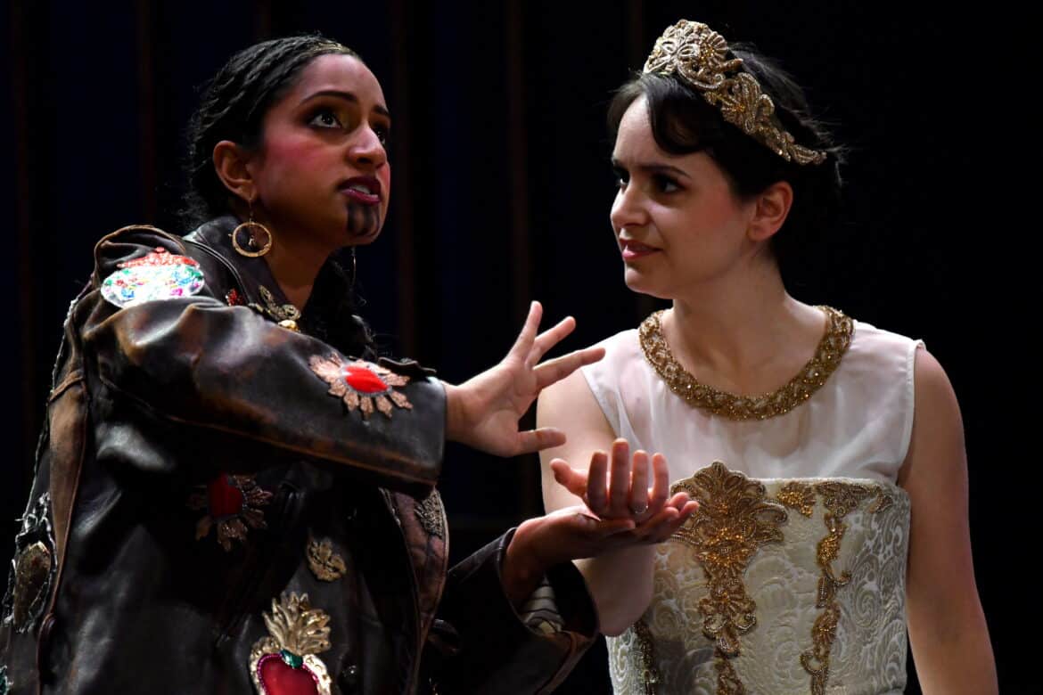 Sur scène, Benjamin Lazar a su rendre limpide l’individualité et l’évolution des personnages, en travaillant chaque intention des acteurs-chanteurs. De fait, la crudité des rapports amoureux est mise à nu. Les costumes d’Alain Blanchot sont tour à tour somptueux (les mariés du début de l’œuvre), surprenants (Achille et Hercule tout de blanc poudrés), décalés (Orillo en punkette), inventifs (Chiron en centaure à crinières et béquilles). Le décor unique, mais assez sommaire, d’Adeline Caron fait de la scène une sorte de théâtre élisabéthain stylisé ou de cirque des passions.