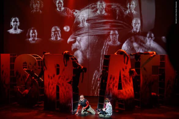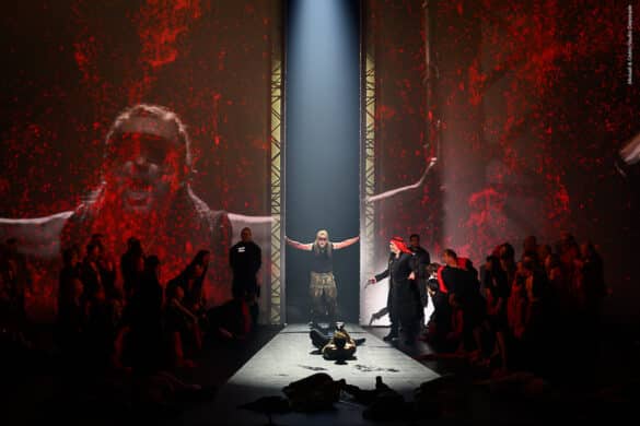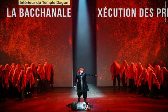 Il est aussi des images d’une brutalité insoutenable. À la toute fin de la bacchanale, la mise en scène de l’exécution des prisonniers, décapités un à un, nous fait frémir d’horreur, alors que l’acte 3 dans son entier est nimbé d’un rouge sang glaçant.