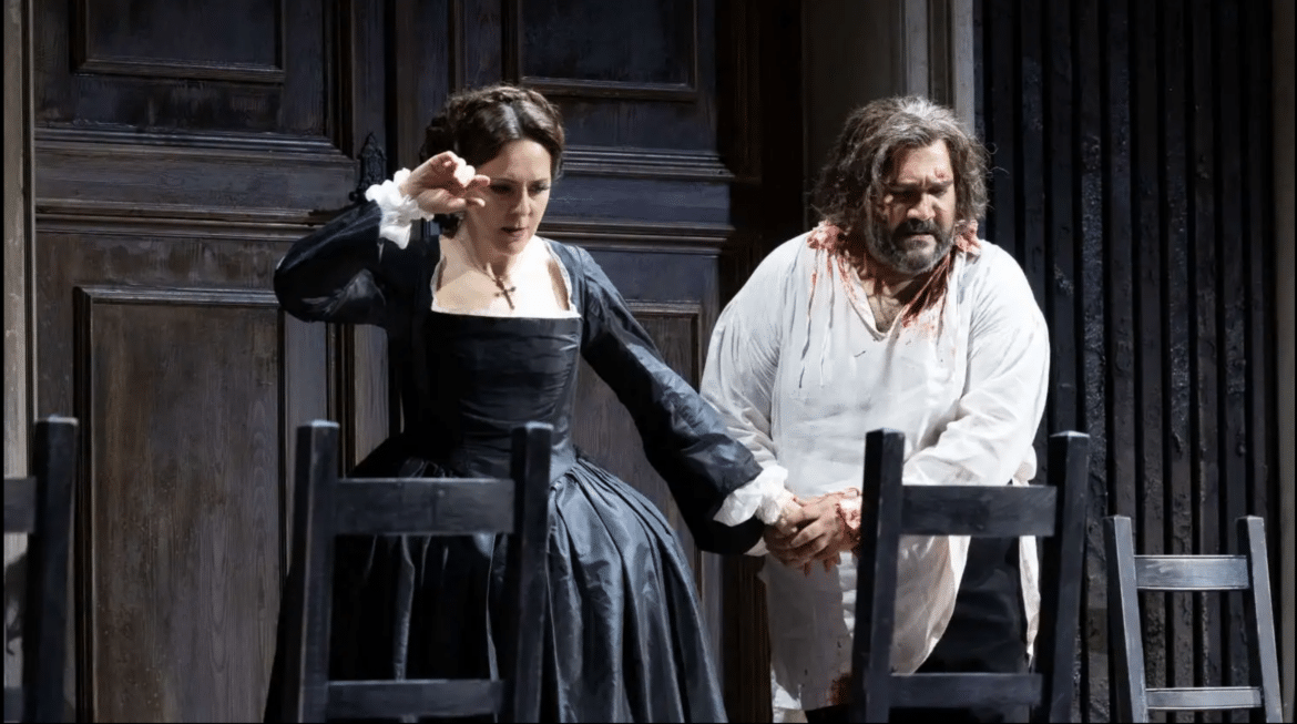Il est donc très méritoire de la part de Maria Agresta de relever le défi de la comparaison avec Maria Callas, dans un titre qu’elle a jusqu’à présent assez peu fréquenté, à l’exception d’un cycle programmé à l’hiver 2019 au Teatro dell’Opera de Rome, avec le même chef et le même ténor. Sa cavatine du souvenir « (Come, innocente giovine », sur la même tonalité que la romanza de Smeton, à l’acte I, est enrichie par des sons filés prodigieux que viennent couronner les vocalises et les variations chromatiques de l’allegro qui suit. Poignante en reine délaissée dans le quintette, elle sait être éblouissante dans la strette du finale I – le fameux « Giudici… ad Anna!!» –, aux teintes bien originales dans la reprise, après avoir campé la consternation engendrée par le soupçon injustifié. Élégiaque dans la prière de l’acte II, elle partage une grande noblesse avec la Giovanna d’Annalisa Stroppa, jusque dans le cri de désespoir de la découverte de ce qui l’oppose maintenant à sa fidèle compagne (« Mia rivale!…»). Si nous sommes loin de l’indignation criée par une Maria Callas à la Scala, voire par une Leyla Gencer à la RAI, face à la Seymour de Giulietta Simionato, toutes les deux, le moderato du pardon laisse pantois. C’est alors sur le souffle qu’elle murmure sa réplique aux aveux de Percy, puis le récitatif de la folie où, seule sur scène avec pour seul appui une chaise, la cantatrice cède la place à la comédienne. Les accents de la cavatine affichent ainsi les couleurs de la démence, avant une cabalette déchirante. Relevons, au moment du ressaisissement passager, le beau tableau du mariage, d’abord dans les coulisses, ensuite plus extériorisé, à l’allure renvoyant au bal de l’acte I de Rigoletto, dont le rapprochement n’est sans doute pas le fruit du hasard.