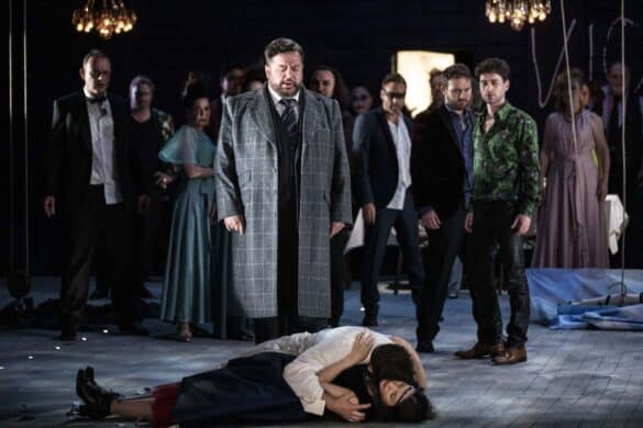 On se préservera évidemment de comparer Enkeleda Kamani à sa devancière, sinon pour souligner que son instrument convient autrement mieux à Violetta que la voix de Natalie Dessay qui – force est de le reconnaître – ne s’est jamais totalement approprié ce rôle. De la dévoyée, la jeune soprano albanaise possède incontestablement l’agilité vocale nécessaire pour négocier le final du premier acte, comme le tempérament dramatique indispensable pour affronter l’immense duo du tableau campagnard avec Germont ou la scène de la fête chez Flora. Dans tous ces instants cruciaux du drame, Enkeleda Kamani fait montre d’une voix sainement projetée, d’aigus ciselés et d’une longueur de souffle qui lui permet de se jouer des difficultés de l’écriture encore belcantiste d’une partie du rôle de Violetta. Mais c’est véritablement dans l’acte de la mort que la chanteuse gagne ses galons de grande Traviata : outre la transfiguration physique qu’elle y opère (dépouillée de sa perruque et de sa robe, elle devient littéralement une autre femme), elle réussit à trouver dans sa voix et dans son jeu des trésors d’authenticité qui, sans verser dans les excès véristes de certaines interprètes, font tout le prix de ses débuts dans un rôle qui l’accompagnera sans doute longtemps. Musicologiquement, le seul reproche qu’on pourrait lui adresser serait d’avoir systématiquement raccourci ses grandes arie à un seul couplet : « Ah fors’è lui » et « Addio, del passato » sont effectivement réduits à la portion congrue et on aurait été curieux d’entendre comment l’interprète est capable de nuancer son chant tout en improvisant des ornementations. Souci de se préserver un soir de Première ou décision de la cheffe d’orchestre de proposer un Verdi réduit à l’os de la partition ? Nul doute que l’artiste aura très vite l’occasion de rechanter Traviata dans une version plus exhaustive de l’œuvre.
