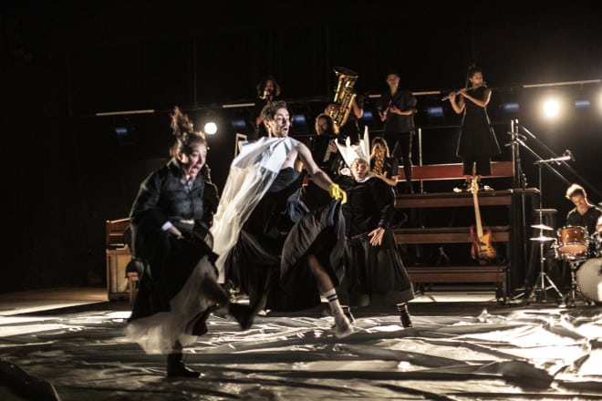 Et la Compagnie La Tempête : Annabelle Bayet soprano et basse électrique, Guy-Loup Boisneau ténor, percussions et piano, Jean-Christophe Brizard basse et accordéon, Myriam Jarmache mezzo-soprano, Lia Naviliat-Cuncic soprano et flûte traversière, Matteo Pastorino clarinette et clarinette basse, René Ramos-Premier baryton et piano, Hélène Richaud mezzo-soprano et violoncelle, Abel Rohrbach bugle et tuba, Vivien Simon ténor, scie musicale et piano