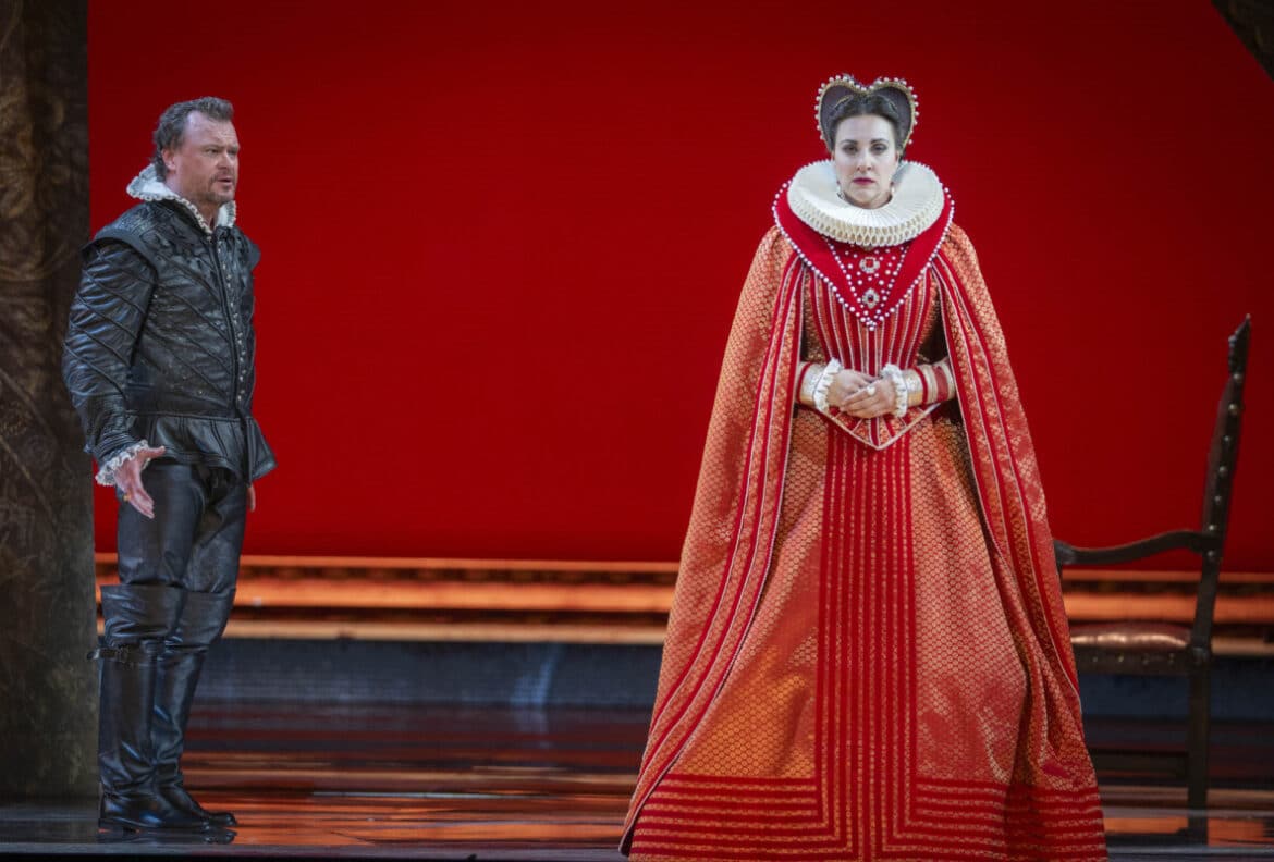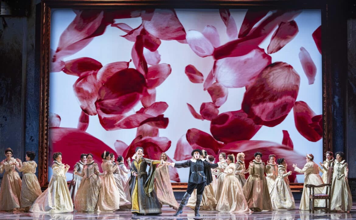 La distribution des deux rôles féminins principaux est également, selon nous, à nuancer. On savait, après sa prise de rôle à Marseille, en 2022, que Varduhi Abrahamyan disposait des moyens vocaux adéquats au rôle d’Eboli. Deux ans plus tard, et tout récemment sortie d’une incarnation de Calbo littéralement époustouflante dans Maometto secondo au San Carlo de Naples, la mezzo soprano franco-arménienne convainc davantage encore que sur la scène phocéenne. Tout d’abord, dans une « chanson du voile » où font évidemment merveille les reflets moirés d’un timbre somptueux auxquels viennent s’adjoindre les qualités de souffle nécessaires pour aborder la longue vocalise à la fin des deux couplets. Dommage que la mise en scène atteigne là des sommets de kitsch avec sa chorégraphie de choristes tout droit sortie d’une opérette de Francis Lopez – esthétique tout à fait respectable mais hors de propos ici – entrecoupée d’interventions parlées non écrites par le compositeur – il fallait oser ! – le tout arrosé d’un nappage de pétales de fleurs… . Tant dans le trio de l’acte II que, plus encore, dans le chant du « O don fatale ! », Varduhi Abrahamyan s’impose comme une splendide Eboli, sachant rester dans un lyrisme mesuré qui ne bascule jamais dans le vulgaire. Une grande interprète. On ne ressort pas pleinement satisfait, en revanche, de l’interprétation vocale de l’Elisabetta de la soprano libano-canadienne Joyce El-Khoury qui, malgré un chant s’efforçant d’être nuancé – avec, en particulier, quelques beaux pianissimi lors de son grand air « Tu, che le vanità » – ne parvient jamais à trouver ni les graves, ni le médium charnu, ni cette dimension angelicata obligée qui caractérise le soprano spinto verdien, incontournable dans ce type d’emploi