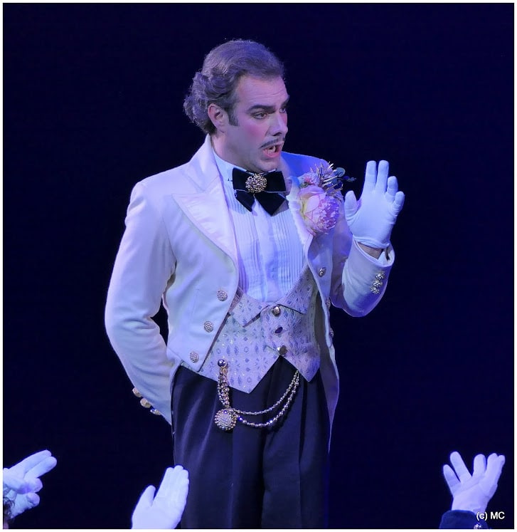 Qu’il nous soit permis d’écrire que le point faible de cette jolie production, à la différence de la dernière à laquelle nous avons assisté à Nice en 2021 – mise en scène signée Benoît Bénichou – est de ne pas avoir pris le parti de dépoussiérer le texte parlé de ses inutilités et scories d’un autre âge, en particulier lorsque celui-ci donne à entendre une vision particulièrement misogyne de la femme. Nous l’avons encore remarqué lors de cette représentation : le public ne rit plus guère désormais aux « bons mots » de Popoff et de Danilo… sans parler des références à la brebis, au loup, au gazon qui glisse et à l’air qui est doux (sic !) tels que figurant dans le pourtant superbe duo « Heure exquise » !