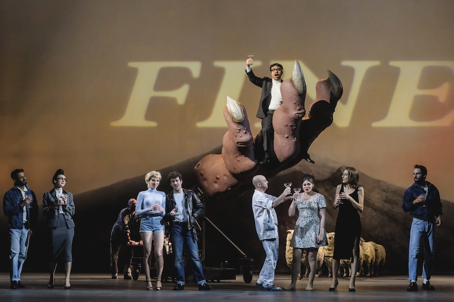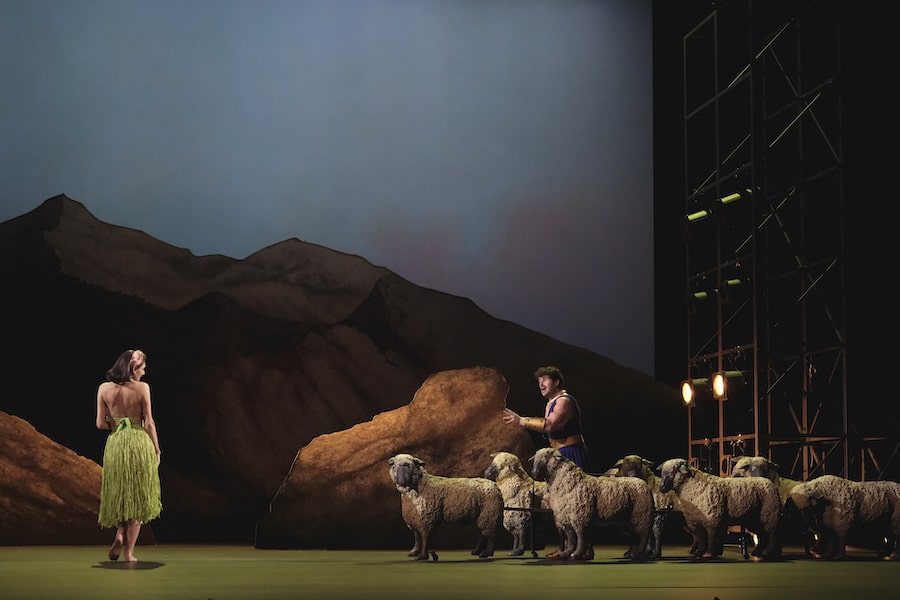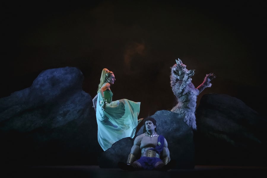 Dans le deuxième acte, on retrouve les acteurs costumés et le décor en papier mâché où la figure du cyclope reprend celle du film Le 7e voyage de Sinbad (1958) de Nathan Juran : un géant avec une tête cornue, un œil, bien sûr, et des pattes de chèvre. Ravella s’empare donc de ce genre mythologique coloré et improbable pour recréer l’opéra du XVIIIe siècle où, immédiatement après les voix des chanteurs, l’élément le plus important de la représentation étaient les scènes peintes et la machinerie scénique, destinés à susciter ce sentiment d’émerveillement que seul le théâtre en musique pouvait offrir au public. Et l’effet est pleinement atteint : les chanteurs jouent parfaitement le jeu, et le public exigeant d’aujourd’hui se laisse convaincre et s’amuse.